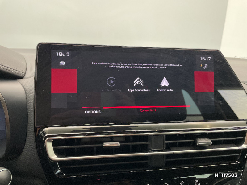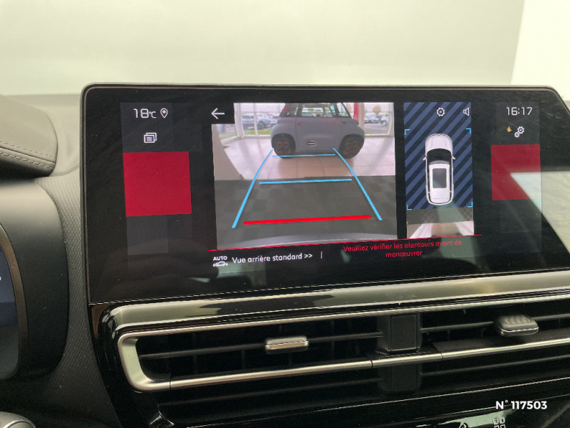 Navigation 3D sur écran central 10" tactile Comprend le système de navigation TomTom, la reconnaissance vocale avec langage naturel, l'interface personnalisable, et les services Connect PLUS additionnels / Suspension Citroën Advanced Comfort / 3 sièges AR indépendants, coulissants, inclinables et escamotables / Enjoliveurs de contour de vitres latérales chromés / Essuie-vitres AV automatique Magic Wash / Boîte automatique 6 rapports / ABS + AFU + ESP + REF / Détection de sous-gonflage / Feux diurnes à LED avec clignotants à LED / Pack Color Noir Brillant Inserts colorés Noir Brillant sur Airbump et bouclier AV / Frein de stationnement électrique automatique / Sabots de protection Aluminium Brillant / Siège conducteur avec réglage lombaire / TCS (Contrôle de la traction) / Elargisseurs d'aile et bas de caisse Noir Mat / Poignées de portes extérieures Noir Brillant / Services Connect PLUS pendant 12 mois / Sièges Advanced Comfort / Calandre supérieure Noir Brillant / Caméra de recul avec Top Rear Vision / Combiné numérique 12,3" personnalisable / Garnissage Tissu Bruneo chine/Toile enduite Noire/Ambiance Metropolitan Black avec Sièges Advanced Comfort / Rétroviseur intérieur électrochrome / Boîtier télématique : Appel d'urgence et Citroën Assistance les services Connect ONE pendant une période de 10 ans / Pack Safety - Active Safety Brake - Alerte active de Franchissement Involontaire de Ligne - Coffee Break Alert - Reconnaissance étendue des panneaux et recommandation de vitesse - Régulateur-limiteur de vitesse / Projecteurs antibrouillard avec éclairage statique d'intersection / Jantes alliage 18" PULSAR Diamantées bi-ton / Prise 12V sur la console centrale / Pack Drive Assist Aide maintien dans la voie, Alerte Attention Conducteur, Commutation automatique des feux de route, Highway Driver Assist (système de conduite autonome de niveau 2), Régulateur de vitesse adaptatif avec fonction Stop & Go / Plancher de coffre escamotable