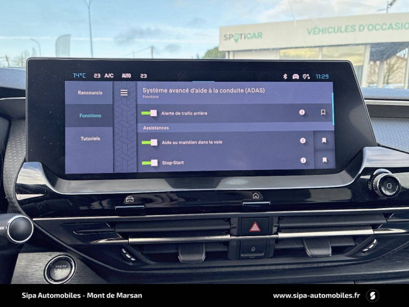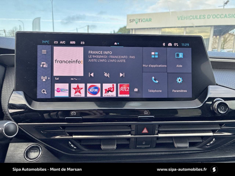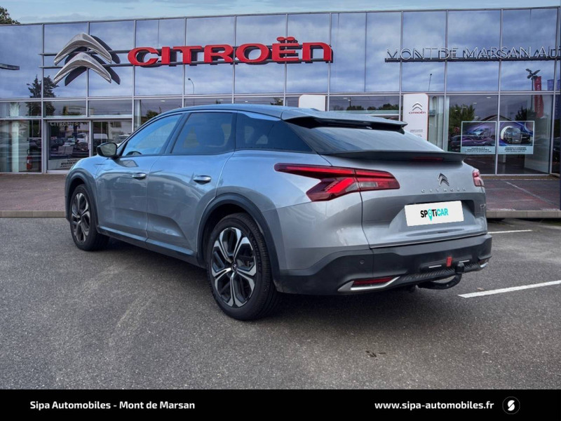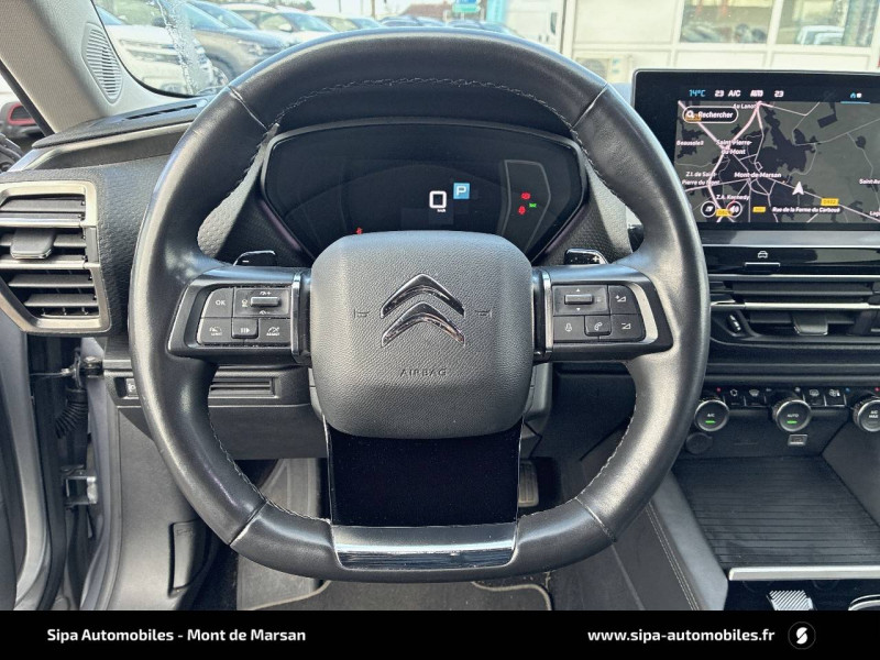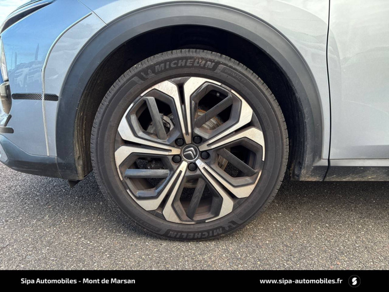2 prises USB au rang 1 (type C) + 2 prises USB au rang 2 (type C) / ABS + REF + AFU / Accès et démarrage mains libres Proximity 2 Télécommandes 3 boutons (verrouillage, coffre et déverrouillage). / Accoudoir central AR avec porte-gobelets intégré et trappe à skis / Active Safety Brake 2.0 / Aérateurs centraux en rang 2 / Aide au positionnement dans la voie / Alerte attention conducteur / Alerte de trafic AR / Alerte Risque Collision / Allumage des feux de détresse en cas de forte décélération / Appuie-têtes AV à réglage intégré (4 voies) / Bacs de rangement sur portes AV/AR / Banquette AR fractionnable 2/3 - 1/3 avec Magic handles / Boite à gants avec éclairage LED / Caméra de recul avec Top Rear Vision / Clignotants impulsionnels / Coffee Break Alert / Combiné numérique couleur avec rétro-éclairage / Commutation automatique des feux de route / Connect Assist : Citroën Connect Box avec Pack SOS et assistance inclus / Console centrale haute avec rangements et accoudoir / Détection de sous-gonflage / Direction à assistance électrique variable / Eclairage à LED (boîte à gants, coffre et rangement console centrale) / Eclairage d'accueil et d'accompagnement / Eclairage de cave à pieds AV / Eclairage derrière le combiné, sous le bandeau de planche et sous la console centrale / Eclairage intérieur d'ambiance Eclairage sur le combiné, sous le bandeau de planche et sous la console centrale / Enjoliveurs de bas de portes, passages de roues et bas de boucliers AV et AR en noir gainé / Essuie-vitre AV automatique avec lavage embarqué / Extended Head Up Display - Vision tête haute pare-brise couleur étendue / Feux AR 3D à LED avec signature permanente visible de jour / Frein de stationnement électrique automatique / Garnissage Cuir Noir /Tissu effet cuir Noir/Tissu effet cuir Gris Nixon- Ambiance Metropolitan Grey + Sièges Advanced Comfort / Grille de calandre inférieure noir grainé avec jonc chrome brillant / Highway Driver Assist (système autonome de niveau 2) / Jantes alliage 19" AeroX Black Diamond (205/55 R19) / Kit de dépannage provisoire de pneumatiques / Lécheurs inférieurs de vitre aspect noir mat / MyCitroën Drive Plus Citroën Connect Nav sur tablette tactile 12'' comprend le système de navigation TomTom, la reconnaissance vocale avec langage naturel et navigation prédictive et durant 3 ans les services MyCitroën Drive Plus (inclut les services Zones de danger, Info Trafic, Stations-service, Parkings, Météo et Recherche locale) avec mise à jour automatique mensuelle de la cartographie / Neutralisation mécanique de l'airbag passager / Pack Safety Brake 2.0 + Régulateur de vitesse adaptatif avec fonction Stop&Go / Pack Visibilité / Pare-choc AR avec décors chromés / Pare-choc AV avec décors chromés / Pare-soleils avec miroirs occultable éclairagés à LED / Plafonnier AV et AR avec LED retro-éclairage push / Poche aumônière au dos des sièges AV / Poignées de portes extérieures couleur caisse / Post Collision Safety Brake / Prédisposition filet de charges hautes rang / Prise 12 V dans le coffre / Prise 12 V en rang 1 / Projecteurs antibrouillard LED avec éclairage statique d'intersection / Projecteurs LED avec signature lumineuse en V / Rails sur tapis de coffre en aluminium / Rangement dans accoudoir AR central avec 2 empreintes canettes / Rangement dépose Smartphone AV l'accoudoir central / Rangement fermé en AV de la console centrale / Recharge sans fil pour smartphone / Reconnaissance étendue des panneaux / Rétroviseur intérieur électrochrome frameless / Rétroviseurs ex.électriques, dégivrants, rabattabl élec. avec éclairage d'accueil et pied noir grain / Sécurité enfants mécanique / Siège conducteur avec réglage lombaire / Siège passager avec réglage lombaire / Sièges Advanced Comfort / Suspension Citroën Advanced Comfort / Système audio numérique (DAB) MP3 8 HP / Système de surveillance d'angle mort longue distance Fonctionne jusqu'à 70 mètres. / Tablette tactile 12" / Témoin et alerte de non bouclage des ceintures conducteur et passagers AV et AR / Vision tête haute pare-brise couleur étendue / Volant chauffant en cuir pleine fleur