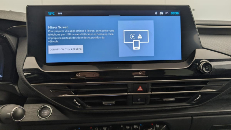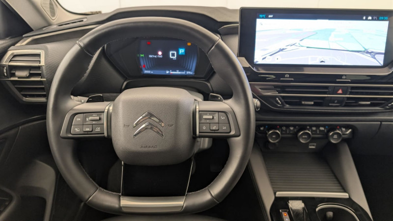 Détection de sous-gonflage / Recharge sans fil pour smartphone / Commutation automatique des feux de route / Accès et démarrage mains libres / Projecteurs antibrouillard LED avec éclairage statique d'intersection / Projecteurs LED avec signature lumineuse en V / Prise 12 V en rang 1 / ABS + AFU + ESP + REF / Suspension Citroën Advanced Comfort / Siège conducteur avec réglage lombaire / Extended Head Up Display - Vision tête haute pare-brise couleur étendue / Volant chauffant en cuir pleine fleur / Rétroviseur intérieur électrochrome frameless / Sièges Advanced Comfort / Rétroviseurs extérieurs électriques, dégivrants, rabattables électriquement avec éclairage d'accueil / Caméra de recul avec Top Rear Vision Caméra de recul avec restitution de l'environnement AR du véhicule sur l'écran tactile grâce à une vue réelle AR et une vue réelle de dessus / Combiné numérique / Eclairage intérieur d'ambiance Eclairage sous le bandeau de planche et sous la console centrale / Boîtier télématique: Appel d'urgence / Garnissage Cuir Noir/Toile enduite Noire/Toile enduite Gris Nixon - Ambiance Metropolitan Grey + Sièges Advanced Comfort / Pack Visibilité: Allumage automatique des feux de croisement Essuie-vitre AV automatique (capteur de pluie) Eclairage d'accueil et d'accompagnement / Highway Driver Assist Aide au positionnement dans la voie, Alerte de trafic AR, Reconnaissance étendue des panneaux et recommandation de vitesse, Régulateur de vitesse adaptatif avec fonction Stop & Go, Surveillance d?angle mort longue distance / Navigation 3D sur écran central 12" tactile Comprend le système de navigation TomTom / Régulateur de vitesse adaptatif avec fonction Stop & Go Comprend la reconnaissance étendue des panneaux. / Pack Safety: Alerte de Franchissement Involontaire de ligne (AFIL) Régulateur-limiteur de vitesse Coffee Break Alert Alerte attention conducteur Alerte Risque Collision Post Collision Safety Brake Active Safety Brake 2.0 Fonctionne à l'aide d'un Radar de 7 à 140 km/h, même de nuit et détecte les cyclistes Reconnaissance des panneaux de vitesse et recommandation / Frein de stationnement électrique automatique / Kit de dépannage provisoire de pneumatiques /
