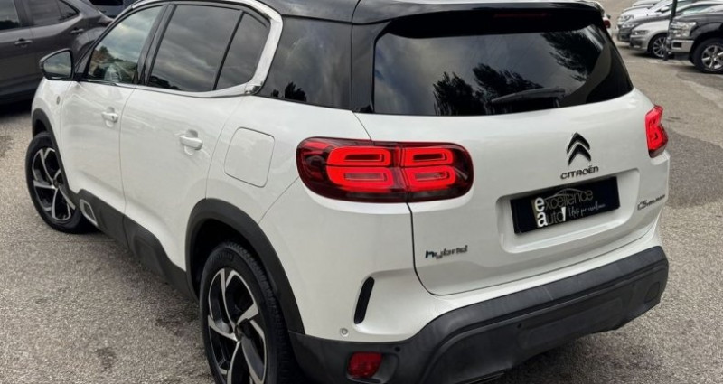 Citroen C5 AIRCROSS HYBRID 225CH C-SERIES E-EAT8, (S.U.V.), BLANC, 10cv, 5 portes, mise en circulation le 30-04-2021. 5 places, longueur : 4,50 mètres, boîte de vitesse : automatique OPTIONS ET EQUIPEMENTS : Audio - Télécommunications - 6 Haut parleurs - Appel d'Assistance Localisé - Appel d'Urgence Localisé - Fonction MP3 - Kit mains-libres Bluetooth - Prise USB - Radio numérique DAB - Services connectés Conduite - Aide au démarrage en côte - Allumage des phares automatique - Capteur de pluie - Démarrage sans clé - Follow me home - Frein stationnement électrique automatiq - Limiteur de vitesse - Régulateur de vitesse - Système d'accès sans clé Extérieur - Ceinture de vitrage chromée - Eclairage statique d'intersection - Feux arrière à LED - Feux de freinage d'urgence - Feux de jour à LED - Jantes Alu - Radar de stationnement AR - Radar de stationnement AV - Rétroviseurs dégivrants - Rétroviseurs rabattables électriquement - Rétroviseurs électriques Intérieur - 3 sièges individuels en rang 2 - Clim automatique bi-zones - Fixation Isofix siège passager avant - Fixations Isofix aux places arrières - Lampes de lecture à l'avant - Lunette arrière surteintée - Ouverture des vitres séquentielle - Prise 12V - Rétroviseur intérieur électrochrome - Siège conducteur avec réglage lombaire - Siège conducteur réglable en hauteur - Siège passager réglable en hauteur - Sièges arrière coulissants - Sièges rang 2 inclinables - Sièges rang 2 rabattables à plat - Verrouillage centralisé des portes - Verrouillage centralisé à distance - Vitres arrière surteintées - Vitres arrière teintées - Vitres arrière électriques - Vitres avant électriques - Volant cuir - Volant multifonction - Volant réglable en profondeur et hauteur Sécurité - ABS - AFIL - Aide au freinage d'urgence - Airbag conducteur - Airbag passager - Airbag passager déconnectable - Détecteur de sous-gonflage - ESP - Freinage automatique d'urgence - Phares antibrouillard - Reconnaissance panneaux de signalisation - Répartiteur électronique de freinage - Système de contrôle des angles morts - Système de prévention des collisions - Témoin de bouclage des ceintures AV Autres équipements et informations : - Chargeur embarqué 3,7kW - Citroën Connect Nav - JA 18'' SWIRL Diamantees bi-ton - Tissu Stone Grey - Tissu Stone Grey / Tissu effet cuir Noir - Tissu effet cuir Noir Kilométrage garanti. Référence annonce : 10876