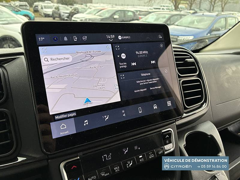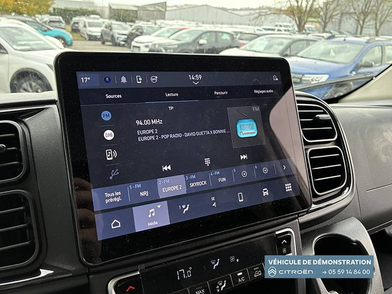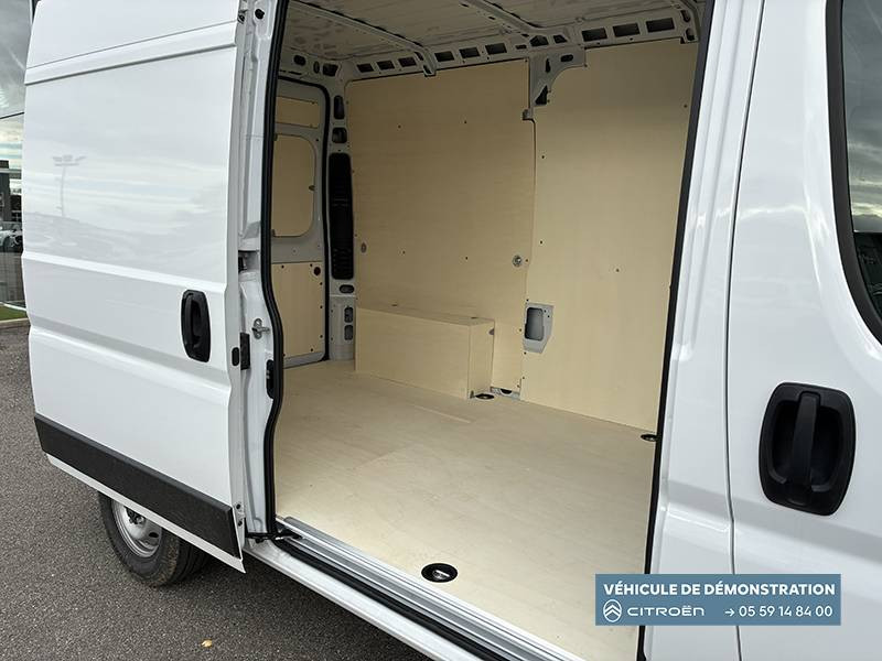 ABS, AFU, ASR et ESP (ESC amélioré avec assistance en cas de vent latéral, contrôle de stabilité de la remorque, et freinage après collision) / Aide au stationnement AR avec avertisseur sonore pour piétons / Alternateur standard (180 A) / Avertisseur sonore de marche AR / Batterie standard (95 Ah) / Boitier télématique Autonome (BTA) / Capteurs de pression des pneumatiques (TPMS indirect) / Cloison tôlée / Crochets d'arrimage latéraux dans l'espace de chargement / Kit de gonflage pneumatiques Fix&Go / Kit de réduction de CO2: Spoiler central (DAM), Guide d'air, Grille avec volets pilotés (AGS) / Pack Sécurité Freinage d'urgence autonome avec détection piéton / cycliste, Aide au maintien dans la voie, Reconnaissance des panneaux de signalisation, Détecteur de fatigue ou d'inattention (attention assist), Adaptation intelligente de la vitesse / Pare-choc AV grainé / Porte-gobelets au milieu du tableau de bord / Portes AR a 2 battantes tôlées / Projecteurs halogène avec feux de circulation diurne / Rappel de bouclage des ceintures de sécurité / Réservoir 90l / Réservoir d'ADBlue 19 litres / Roues en acier 15'' / Sellerie en tissu crêpe noir + appuie-tête pleins / Siège conducteur avec réglage en hauteur, réglagle lombaire et accoudoir / Système audio 5" avec radio numérique (DAB) + Bluetooth + 1 port USB