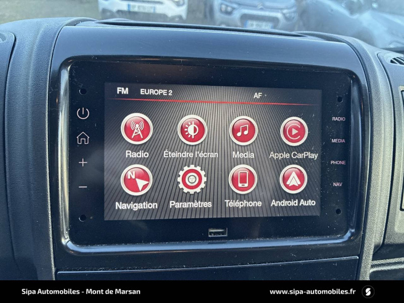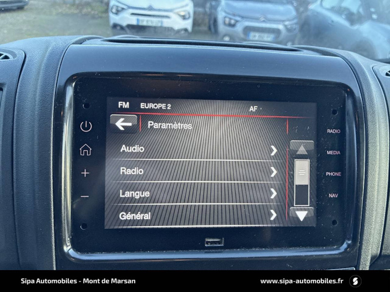 ABS, AFU, ASR et ESP (ESC amélioré avec assistance en cas de vent latéral, contrôle de stabilité de la remorque, et freinage après collision) / Antenne prédisposition radio numérique / Avertisseur sonore de marche AR / Cloison tôlée / Crochet d'arrimage latéraux / Garnissage Tissu Darko / Kit de regonflage pneumatiques / Porte AR a 2 battants tôlés / Siège conducteur avec accoudoir / Système audio avec radio numérique (DAB) + Bluetooth