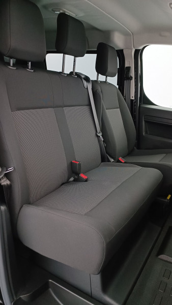Banquette 3 places fixe en rang 2 / Banquette passager 2 places avec rangement sous assise / Portes arrière battantes 50/50 tôlées à ouverture à 180° / Revêtement de sol en TPO cabine / Allumage automatique des feux de croisement et des essuie-vitres / Boitier télématique (appel d'urgence et d'assistance) / Détection de sous-gonflage / Pack sécurité / / Véhicules équivalents: Trafic, Jumpy