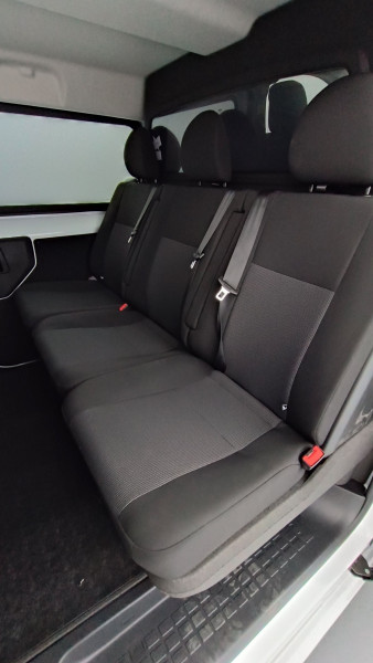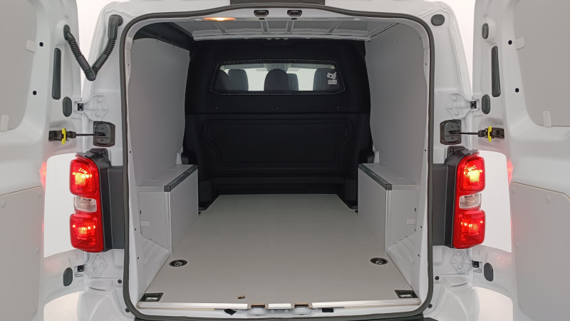 Banquette 3 places fixe en rang 2 / Banquette passager 2 places avec rangement sous assise / Portes arrière battantes 50/50 tôlées à ouverture à 180° / Revêtement de sol en TPO cabine / Allumage automatique des feux de croisement et des essuie-vitres / Boitier télématique (appel d'urgence et d'assistance) / Détection de sous-gonflage / Pack sécurité / / Véhicules équivalents: Trafic, Jumpy