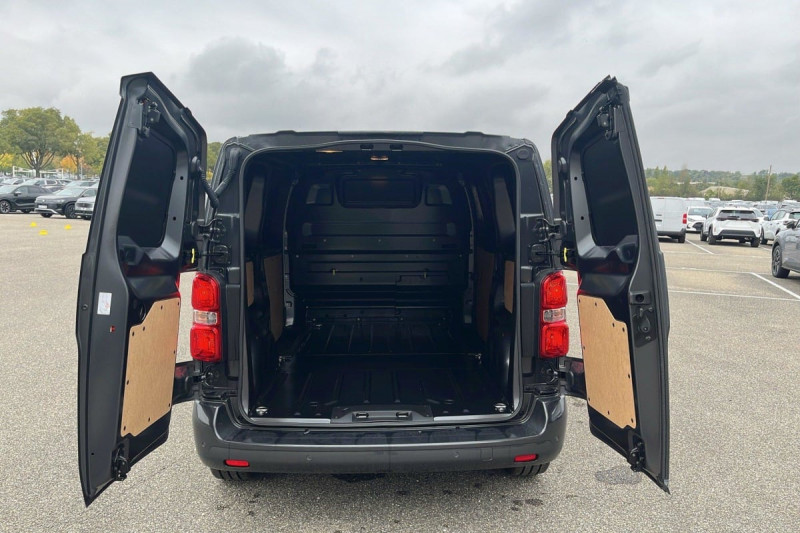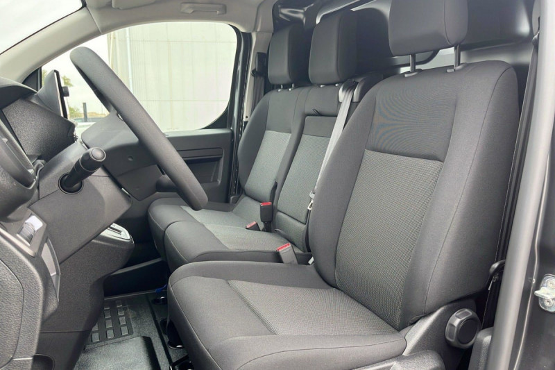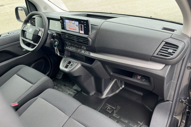 Cloison pleine tôlée / Revêtement de sol TPO dans l'habitacle / Climatisation manuelle régulée en température / Jeu de clefs: 2 plips HF 3 boutons avec fonction selectivité / Kit de regonflage pneumatiques (Compresseur 12V + Cartouche de produit de colmatage) / Pack Sécurité Freinage automatique d'urgence avec alerte risque de collision, Assistance au maintien dans la voie, Commutation automatique des feux de route, Détection inattention conducteur Reconnaissance des panneaux de vitesse et recommandation : Reconnaissance des panneaux de vitesse et recommandation Freinage automatique d'urgence avec alerte risque de collision Assistance au maintien dans la voie Commutation automatique des feux de route Détection inattention conducteur / Pare-brise feuilleté acoustique / Siège conducteur individuel avec appui-tête réglable en hauteur et avec accoudoir Réglage : longueur, inclinaison, réhausse et lombaire / Banquette passager 2 places avec appuis-têtes réglables en hauteur avec rangement sous assise / Détection de sous-gonflage indirecte / Allumage automatique des feux de croisement et des essuie-vitres AV / Anneaux d'arrimage 6 répartis uniformément sur la zone de chargement / Panneaux de garniture de type Isorel en rang 2 et 3 / Prise 12V (1200 W max) dans la boîte à gants / Boucliers, Poignées de portes extérieures, Enjoliveur(s) de rail de porte latérale coulissante Baguettes latérales et Coques de rétroviseurs extérieurs teintés masse / Portes AR battantes 50/50 tôlées à ouverture à 180° / Sellerie Tissu bi-ton noir-gris / Commandes au volant du système audio et du régulateur-limiteur de vitesse / Boitier télématique appel d'urgence et d'assistance géolocalisés + offres de services connectés) / / Véhicules équivalents: Trafic, Jumpy