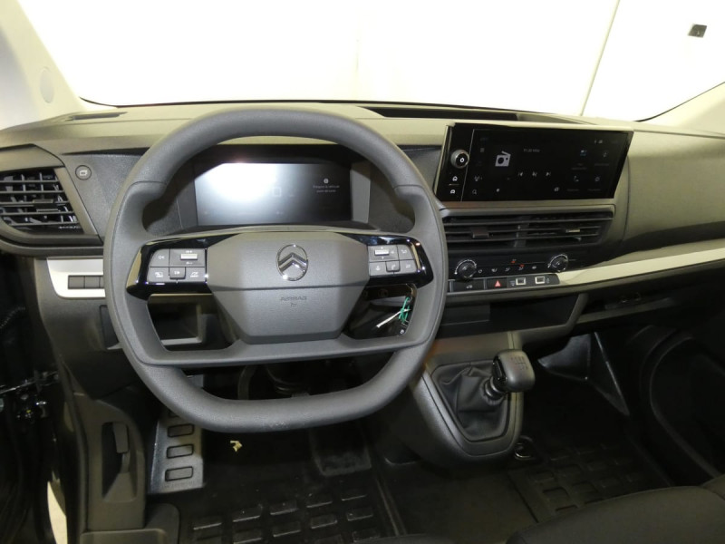 Cloison pleine tôlée / Revêtement de sol TPO dans l'habitacle / Climatisation manuelle régulée en température / Jeu de clefs: 2 plips HF 3 boutons avec fonction selectivité / Pack Sécurité : Reconnaissance des panneaux de vitesse et recommandation Freinage automatique d'urgence avec alerte risque de collision Assistance au maintien dans la voie Commutation automatique des feux de route Détection inattention conducteur / Pare-brise feuilleté acoustique / Siège conducteur individuel avec appui-tête réglable en hauteur et avec accoudoir Réglage : longueur, inclinaison, réhausse et lombaire / Détection de sous-gonflage indirecte / Allumage automatique des feux de croisement et des essuie-vitres AV / Anneaux d'arrimage 6 répartis uniformément sur la zone de chargement / Combiné numérique LCD noir et blanc / Panneaux de garniture de type Isorel en rang 2 et 3 / Prise 12V (1200 W max) dans la boîte à gants / Boucliers, Poignées de portes extérieures, Enjoliveur(s) de rail de porte latérale coulissante Baguettes latérales et Coques de rétroviseurs extérieurs teintés masse / Jantes tôle 16" grises avec cabochon noir / Portes AR battantes 50/50 tôlées à ouverture à 180° / Projecteurs halogène (H15) avec feux diurnes intégrés / Radio DAB Bluetooth avec écran tactile 5'' monochrome + 4 HP (2 tweeters + 2 woofers) + 1 prise USB-A / Sellerie Tissu bi-ton noir-gris / Commandes au volant du système audio et du régulateur-limiteur de vitesse / Boitier télématique appel d'urgence / / Véhicules équivalents: Trafic, Jumpy