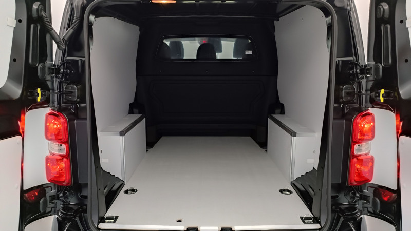 Banquette 3 places fixe en rang 2 / Banquette passager 2 places avec rangement sous assise / Portes arrière battantes 50/50 tôlées à ouverture à 180° / Revêtement de sol en TPO cabine / Allumage automatique des feux de croisement et des essuie-vitres / Boitier télématique (appel d'urgence et d'assistance) / Détection de sous-gonflage / Pack sécurité / / Véhicules équivalents: Trafic, Jumpy