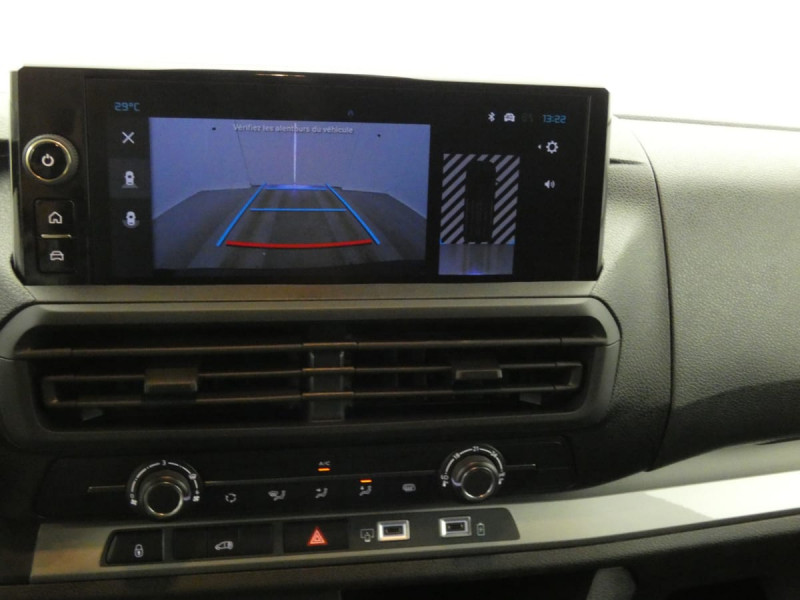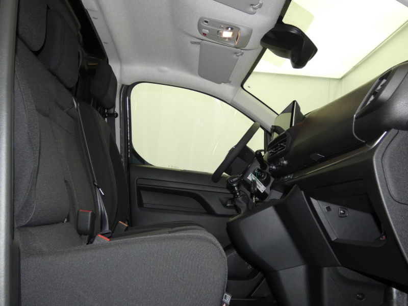 Cloison pleine tôlée / Revêtement de sol TPO dans l'habitacle / Climatisation manuelle régulée en température / Jeu de clefs: 2 plips HF 3 boutons avec fonction selectivité / Pack Sécurité : Reconnaissance des panneaux de vitesse et recommandation Freinage automatique d'urgence avec alerte risque de collision Assistance au maintien dans la voie Commutation automatique des feux de route Détection inattention conducteur / Pare-brise feuilleté acoustique / Siège conducteur individuel avec appui-tête réglable en hauteur et avec accoudoir Réglage : longueur, inclinaison, réhausse et lombaire / Détection de sous-gonflage indirecte / Allumage automatique des feux de croisement et des essuie-vitres AV / Anneaux d'arrimage 6 répartis uniformément sur la zone de chargement / Combiné numérique LCD noir et blanc / Panneaux de garniture de type Isorel en rang 2 et 3 / Prise 12V (1200 W max) dans la boîte à gants / Boucliers, Poignées de portes extérieures, Enjoliveur(s) de rail de porte latérale coulissante Baguettes latérales et Coques de rétroviseurs extérieurs teintés masse / Jantes tôle 16" grises avec cabochon noir / Portes AR battantes 50/50 tôlées à ouverture à 180° / Projecteurs halogène (H15) avec feux diurnes intégrés / Radio DAB Bluetooth avec écran tactile 5'' monochrome + 4 HP (2 tweeters + 2 woofers) + 1 prise USB-A / Sellerie Tissu bi-ton noir-gris / Commandes au volant du système audio et du régulateur-limiteur de vitesse / Boitier télématique appel d'urgence / / Véhicules équivalents: Trafic, Jumpy