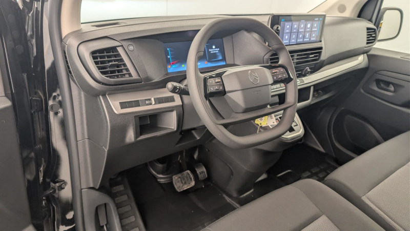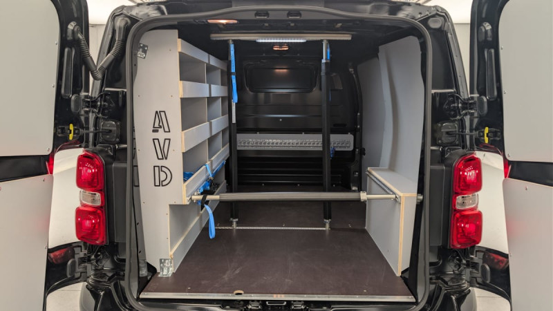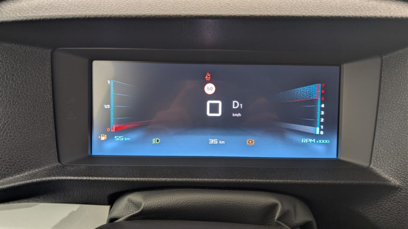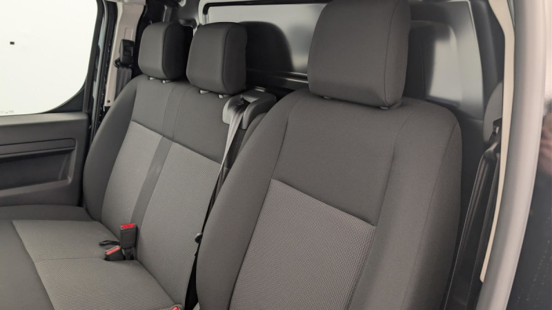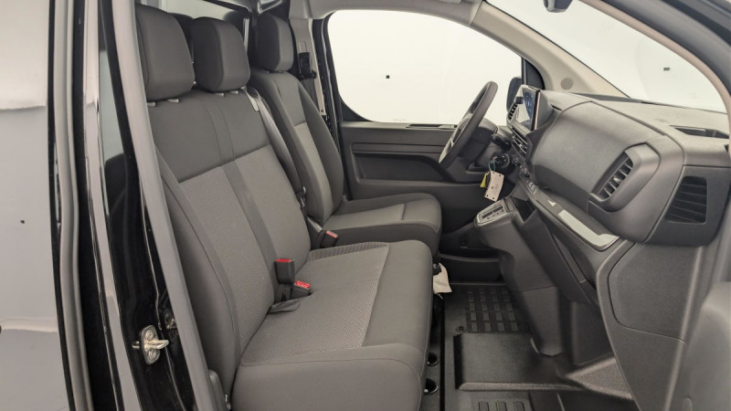 Cloison pleine tôlée / Climatisation manuelle régulée en température / Jeu de clefs: 2 plips HF 3 boutons avec fonction selectivité / Pack Sécurité Freinage automatique d'urgence avec alerte risque de collision, Assistance au maintien dans la voie, Commutation automatique des feux de route, Détection inattention conducteur Reconnaissance des panneaux de vitesse et recommandation : Reconnaissance des panneaux de vitesse et recommandation Freinage automatique d'urgence avec alerte risque de collision Assistance au maintien dans la voie Commutation automatique des feux de route Détection inattention conducteur / Pare-brise feuilleté acoustique / Siège conducteur individuel avec appui-tête réglable en hauteur et avec accoudoir Réglage : longueur, inclinaison, réhausse et lombaire / Banquette passager 2 places avec appuis-têtes réglables en hauteur avec rangement sous assise / Détection de sous-gonflage indirecte / Allumage automatique des feux de croisement et des essuie-vitres AV / Prise 12V (1200 W max) dans la boîte à gants / Portes AR battantes 50/50 tôlées à ouverture à 180° / Sellerie Tissu bi-ton noir-gris / Commandes au volant du système audio et du régulateur-limiteur de vitesse / Boitier télématique appel d'urgence et d'assistance géolocalisés + offres de services connectés) / / Véhicules équivalents: Trafic, Jumpy