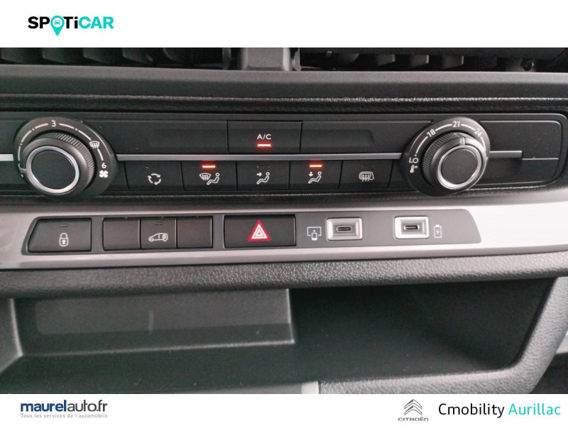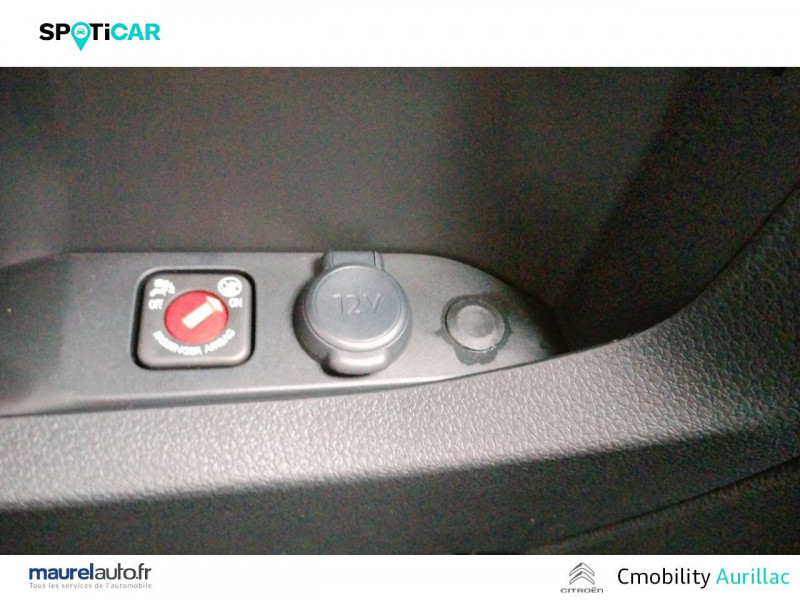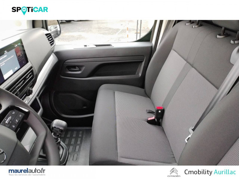 Allumage automatique des feux de croisement et des essuie-vitres AV / Anneaux d'arrimage 6 répartis uniformément sur la zone de chargement / Banquette passager 2 places avec appuis-têtes réglables en hauteur avec rangement sous assise / Boucliers, Poignées de portes extérieures, Enjoliveur(s) de rail de porte latérale coulissante Baguettes latérales et Coques de rétroviseurs extérieurs noirs teintés masse / Climatisation manuelle régulée en température / Cloison pleine tôlée / Combiné numérique LCD noir et blanc / Connectivité via BTA (appel d'urgence et d'assistance localisées + offres services connectés) SOS & Assistance : Appel d'urgence automatique ou manuel par push SOS, et mise en relation directe avec la plateforme d'assistance CITROËN (24h/24-7j/7)Teleservices : Détection du besoin d'une intervention technique ou d'une opération d'entretien périodique et transmission au réseau CITROËN pour prise de rendez-vous (Pack Connect One pendant 10 ans) / Détection de sous-gonflage indirecte / Jantes tôle 16" grises avec cabochon noir / Jeu de clefs: 2 plips HF 3 boutons avec fonction selectivité / Kit de regonflage pneumatiques (Compresseur 12V + Cartouche de produit de colmatage) / Pack Sécurité Freinage automatique d'urgence avec alerte risque de collision, Assistance au maintien dans la voie, Commutation automatique des feux de route, Détection inattention conducteur Reconnaissance des panneaux de vitesse et recommandation / Panneaux de garniture de type Isorel en rang 2 et 3 / Pare-brise feuilleté acoustique / Portes AR battantes 50/50 tôlées à ouverture à 180° / Prise 12V (1200 W max) dans la boîte à gants / Projecteurs halogène (H15) avec feux diurnes intégrés / Radio DAB Bluetooth avec écran tactile 5'' monochrome + 4 HP (2 tweeters + 2 woofers) + 1 prise USB-A / Revêtement de sol TPO dans l'habitacle / Sellerie Tissu bi-ton noir-gris / Siège conducteur individuel avec appui-tête réglable en hauteur et avec accoudoir Réglage : longueur, inclinaison, réhausse et lombaire / Teinte de caisse opaque