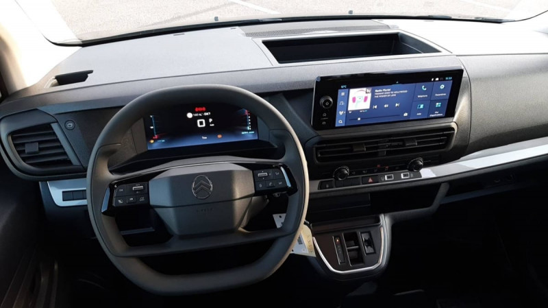 Charge utile majorée / Climatisation manuelle régulée en température / Pack Sécurité : Reconnaissance des panneaux de vitesse et recommandation Freinage automatique d'urgence avec alerte risque de collision Assistance au maintien dans la voie Commutation automatique des feux de route Détection inattention conducteur / Pare-brise feuilleté acoustique / Revêtement de sol TPO en rangs 1 et 2 / Vitres latérales fixes surteintées acoustiques en rang 2 / Détection de sous-gonflage indirecte / Allumage automatique des feux de croisement et des essuie-vitres AV / Vitres latérales fixes en rang 2 / Anneaux d'arrimage 6 répartis uniformément sur la zone de chargement / Panneaux de garniture de type Isorel en rang 2 et 3 / Rétroviseur intérieur prismatique / Banquette fixe 3 places en rang 2 avec appui-tête réglables et 2 accoudoirs, position unique conforme aux réglementations fiscales pays, avec coffre de rangement amovible sous assises gauche et centrale (accessible depuis habitacle) et avec zone pour charge longue sous assise droite (accessible par la zone de chargement) / Prise 12V (1200 W max) dans la boîte à gants / Sécurité enfants mécanique / Airbags latéraux AV tête-thorax en rang 1 et airbags rideau pour tête / Boucliers, Poignées de portes extérieures, Enjoliveur(s) de rail de porte latérale coulissante Baguettes latérales et Coques de rétroviseurs extérieurs noirs teintés masse / Jantes tôle 16" grises / Portes AR battantes 50/50 tôlées à ouverture à 180° / Projecteurs halogène (H15) avec feux diurnes intégrés / Sellerie Tissu bi-ton noir-gris / Commandes au volant du système audio et du régulateur-limiteur de vitesse / Boitier télématique appel d'urgence / / Véhicules équivalents: Trafic, Jumpy