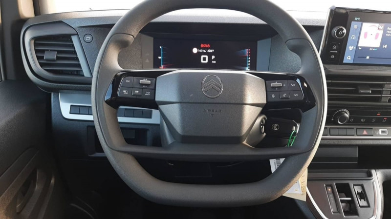 Charge utile majorée / Climatisation manuelle régulée en température / Pack Sécurité : Reconnaissance des panneaux de vitesse et recommandation Freinage automatique d'urgence avec alerte risque de collision Assistance au maintien dans la voie Commutation automatique des feux de route Détection inattention conducteur / Pare-brise feuilleté acoustique / Revêtement de sol TPO en rangs 1 et 2 / Vitres latérales fixes surteintées acoustiques en rang 2 / Détection de sous-gonflage indirecte / Allumage automatique des feux de croisement et des essuie-vitres AV / Vitres latérales fixes en rang 2 / Anneaux d'arrimage 6 répartis uniformément sur la zone de chargement / Panneaux de garniture de type Isorel en rang 2 et 3 / Rétroviseur intérieur prismatique / Banquette fixe 3 places en rang 2 avec appui-tête réglables et 2 accoudoirs, position unique conforme aux réglementations fiscales pays, avec coffre de rangement amovible sous assises gauche et centrale (accessible depuis habitacle) et avec zone pour charge longue sous assise droite (accessible par la zone de chargement) / Prise 12V (1200 W max) dans la boîte à gants / Sécurité enfants mécanique / Airbags latéraux AV tête-thorax en rang 1 et airbags rideau pour tête / Boucliers, Poignées de portes extérieures, Enjoliveur(s) de rail de porte latérale coulissante Baguettes latérales et Coques de rétroviseurs extérieurs noirs teintés masse / Jantes tôle 16" grises / Portes AR battantes 50/50 tôlées à ouverture à 180° / Projecteurs halogène (H15) avec feux diurnes intégrés / Sellerie Tissu bi-ton noir-gris / Commandes au volant du système audio et du régulateur-limiteur de vitesse / Boitier télématique appel d'urgence / / Véhicules équivalents: Trafic, Jumpy