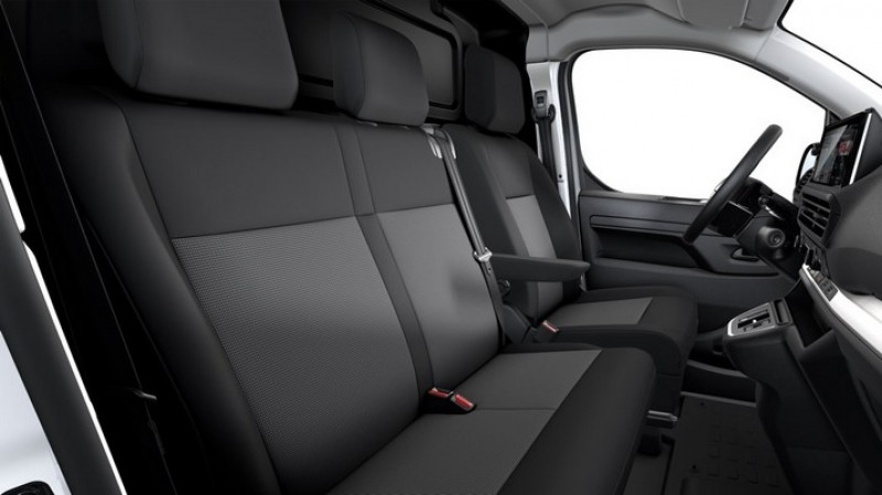Afu / Allumage automatique des feux de croisement et des essuie-vitres av / Anneaux d'arrimage 8 répartis uniformément sur la zone de chargement / Banquette passager 2 places avec appuis-têtes réglables en hauteur / Boucliers + poignées de portes extérieures + enjoliveur(s) de rail de porte latérale coulissante+  baguettes latérales et coques de rétroviseurs extérieurs noirs teintés masse / Climatisation manuelle régulée en température / Cloison pleine tôlée / Combiné numérique 10" / Commandes au volant du système audio et du régulateur-limiteur de vitesse / Controle de traction amélioré grip control + système d'aide à la descente / Détection de sous-gonflage indirecte / Eclairage renforcéà led dans la zone de chargement : 1 plafonnier led (5w) en rang 2 + 1 spot led (10w) en rang 3 / Ecran tactile 10" hd couleur / Inclinaison / Jantes tôle grises 17" avec cabochon noir  / Mirror screen compatible apple carplay et android auto / Navigation 3d connectée  / Pack chantier : controle de traction amélioré grip control + système d'aide à la descente + roue de secours homogène + jantes tôle grises 17" avec cabochon noir + suspension réhaussée de +20 mm et plaque de protection sous moteur / Pack moduwork : banquette passager 2 places modulables avec appuis-têtes réglables en hauteur + siège passager latéral relevable + trappe de charge longue sous banquette passager + tablette écritoire intégrée dans le dossier de la place centrale / Pack premium connect : navigation 3d connectée + combiné numérique 10" + ecran tactile 10" hd couleur + mirror screen compatible apple carplay et android auto + dynamic surround view avec rétrovision numérique ar et latérale droite + caméra de recul 180° + aide au stationnement av et latéral + systè / Pack sécurité : freinage automatique d'urgence avec alerte risque de collision + assistance au maintien dans la voie + commutation automatique des feux de route + détection inattention conducteur + reconnaissance des panneaux de vitesse et recommandation / Portes ar battantes 50/50 tôlées à ouverture à 180° / Prise 12v (1200 w max) dans la boîte à gants / Projecteurs halogène avec feux diurnes intégrés / Réhausse et lombaire / Revêtement de sol tpo dans l'habitacle / Sellerie tissu bi-ton noir-gris / Siège conducteur individuel avec appui-tête réglable en hauteur et avec accoudoir réglage : longueur / Suspension réhaussée de +20 mm et plaque de protection sous moteur / Teinte de caisse opaque blanc icy