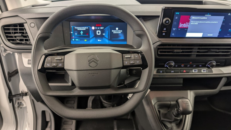 Cloison pleine tôlée / Revêtement de sol TPO dans l'habitacle / Charge utile majorée / Climatisation manuelle régulée en température / Pack Sécurité : Reconnaissance des panneaux de vitesse et recommandation Freinage automatique d'urgence avec alerte risque de collision Assistance au maintien dans la voie Commutation automatique des feux de route Détection inattention conducteur / Pare-brise feuilleté acoustique / Siège conducteur individuel avec appui-tête réglable en hauteur et avec accoudoir Réglage : longueur, inclinaison, réhausse et lombaire / Banquette passager 2 places avec appuis-têtes réglables en hauteur avec rangement sous assise / Détection de sous-gonflage indirecte / Allumage automatique des feux de croisement et des essuie-vitres AV / Jantes tôle 16" grises avec cabochon noir / Portes AR battantes 50/50 tôlées à ouverture à 180° / Projecteurs halogène (H15) avec feux diurnes intégrés / Sellerie Tissu bi-ton noir-gris / Commandes au volant du système audio et du régulateur-limiteur de vitesse / Boitier télématique appel d'urgence / / Véhicules équivalents: Trafic, Jumpy