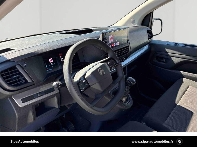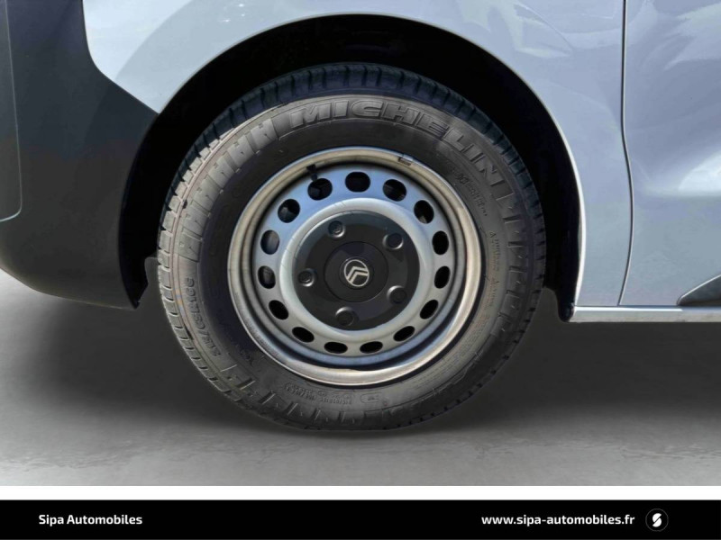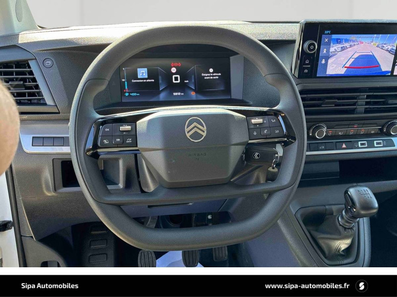 Allumage automatique des feux de croisement et des essuie-vitres AV / Anneaux d'arrimage 6 répartis uniformément sur la zone de chargement / Banquette passager 2 places avec appuis-têtes réglables en hauteur avec rangement sous assise / Boucliers, Poignées de portes extérieures, Enjoliveur(s) de rail de porte latérale coulissante Baguettes latérales et Coques de rétroviseurs extérieurs noirs teintés masse / Climatisation manuelle régulée en température / Cloison pleine tôlée / Combiné numérique LCD noir et blanc / Connectivité via BTA (appel d'urgence et d'assistance localisées + offres services connectés) SOS & Assistance : Appel d'urgence automatique ou manuel par push SOS, et mise en relation directe avec la plateforme d'assistance CITROËN (24h/24-7j/7)Teleservices : Détection du besoin d'une intervention technique ou d'une opération d'entretien périodique et transmission au réseau CITROËN pour prise de rendez-vous (Pack Connect One pendant 10 ans) / Détection de sous-gonflage indirecte / Jantes tôle 16" grises avec cabochon noir / Jeu de clefs: 2 plips HF 3 boutons avec fonction selectivité / Kit de regonflage pneumatiques (Compresseur 12V + Cartouche de produit de colmatage) / Pack Sécurité Freinage automatique d'urgence avec alerte risque de collision, Assistance au maintien dans la voie, Commutation automatique des feux de route, Détection inattention conducteur Reconnaissance des panneaux de vitesse et recommandation / Panneaux de garniture de type Isorel en rang 2 et 3 / Pare-brise feuilleté acoustique / Portes AR battantes 50/50 tôlées à ouverture à 180° / Prise 12V (1200 W max) dans la boîte à gants / Projecteurs halogène (H15) avec feux diurnes intégrés / Radio DAB Bluetooth avec écran tactile 5'' monochrome + 4 HP (2 tweeters + 2 woofers) + 1 prise USB-A / Revêtement de sol TPO dans l'habitacle / Sellerie Tissu bi-ton noir-gris / Siège conducteur individuel avec appui-tête réglable en hauteur et avec accoudoir Réglage : longueur, inclinaison, réhausse et lombaire / Teinte de caisse opaque