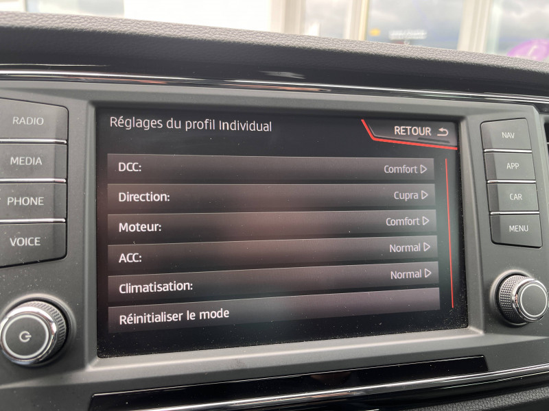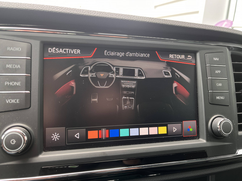 Black Pack extérieur / Climatisation automatique bizone "Climatronic" avec système Pure Air / Pack extérieur CUPRA / Pack Rangement / Park Assist avec aide au stationnement AV et AR / Pédalier en aluminium / Rétroviseur intérieur jour/nuit automatique / Top View Camera 360° / Welcome light - éclairage à LED projetant le logo CUPRA au sol / Beats Audio / Ciel de pavillon Noir / Connectivity Box avec chargeur à induction / Connectivité AUX-IN + 4 USB / CUPRA Box / Digital Cockpit / Eclairage d'ambiance Advanced Ambient Light / Etriers de freins noirs / Front Assist avec détection des piétons / Full Link avec technologie WLAN / Garantie 5 ans ou 100 000 km / Hayon électrique mains-libres ''Virtual Pedal'' / Indicateur de niveau de lave-glace / Keyless Access : Accès et démarrage mains-libres / Molette Driving Experience avec Drive Profile et direction progressive (4 modes de conduite plus fonctionnalités OFFROAD et CUPRA) / Palettes de changement de vitesse / Pneumatiques 245/40 R19 94W / Quadruple sortie d'échappement CUPRA chromée / Roue de secours 18" de taille réduite / Régulation adaptative du châssis DCC / Seuils de porte CUPRA rétro-éclairés / Suspension sport CUPRA / Système de déverrouillage rapide de la banquette AR / Système de freinage CUPRA