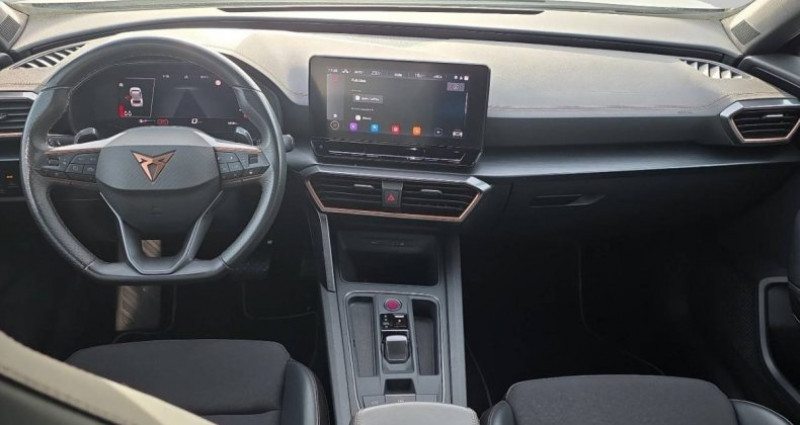 Cylindrée : 1498 cm3 Nb. Vitesse : 7 - Pack Drive Assist L *** Avec : Assistant de sortie de stationnement et Exit Assist *** Avec : Side Assist: Détection d'angles morts - Sièges baquets en textile Noir chauffants + réglage élec. conducteur - Jantes en alliage 18 Performance Black - Roue de secours de taille réduite - Aide au stationnement AR - Bandeau AR Infinite Light à LED avec clignotants à défilement et cérémonie de bienvenue - Climatisation automatique tri-zone Climatronic - Contre-portes en similicuir noir - Couleur contrastante Dark Alu (soubassements, élargisseurs d'ailes et coques rétroviseurs) - Jantes en alliage 18'' Performance usinées - Pack extérieur CUPRA avec entourages de vitres Noir Piano - Pack Intérieur Copper avec inserts Dark Alu - Projecteurs Full LED - Système de navigation 3D sur écran tactile HD12 - Volant sport multifonction en cuir chauffant avec palettes - 2 prises USB-C éclairées à l'AV et 2 à l'AR - Accoudoir central - Accès et démarrage mains-libres - Airbags latéreaux, rideaux et central - Caméra de recul - Capteur de pluie et de luminosité - Ciel de pavillon Noir - Clignotants à défilement et cérémonie de bienvenue AR - Connectivity Box avec chargeur à induction - CUPRA Box - CUPRA Connect Media & Internet - Digital Cockpit: combiné d'instruments digital haute résolution 10,25 - Direction dynamique - Dossiers AR rabattables 2/3 - 1/3 - Double sortie d'échappement Noire stylisée - eCall - appel d'urgence - Eclairage d'ambiance personnalisable - Eclairage de bienvenue avec projection du logo CUPRA au sol - Feux de route intelligents - Fixations ISOFIX avec Top-Tether à l'AR - Full Link avec CarPlay sans fil - Keyless Access : Accès et démarrage mains-libres - Lampes de lecture à l'AV et à l'AR - Pare-soleils avec miroirs de courtoisie éclairés - Projecteurs anti-brouillard avec Cornering Light et Coming Home - Radio numérique DAB - Rails de toit Noir Piano - Reconnaissance des panneaux de signalisation (Sign Assist) - Réglage en hauteur et lombaire des sièges AV - Régulateur de vitesse adaptatif ACC predictif avec arrêt d`urgence - Rétroviseur intérieur électrochrome - Seuils de porte CUPRA rétro-éclairés - Sièges Sport en textile Noir - Système audio 7 HP avec contrôle vocal Hola Hola - Tapis de sol spécifiques CUPRA - Vitres AR surteintées