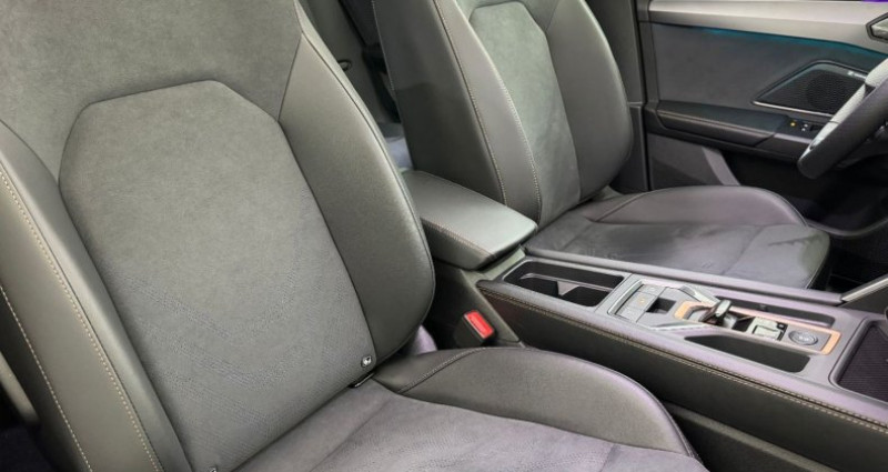 Cylindrée : 1498 cm3 EQUIPEMENTS Lane Assist / aide au maintien dans la voie, Eclairage de bienvenue avec projection du logo CUPRA au sol et éclairage d'accompagnement, Projecteurs anti/brouillard triangulaires avec éclairage d'intersection, ABS, Accoudoir central AV réglable en hauteur et profondeur, Caméra de recul, Ciel de pavillon Noir, Climatisation automatique tri/zone Climatronic, Hayon électrique mains/libres ''Virtual Pedal'', Radio numérique DAB, Capteur de pluie et de luminosité, Lane Assist Plus, Vitres AR surteintées, Seuils de porte CUPRA rétro/éclairés, Connectivity Box avec chargeur à induction, CUPRA Box, Pare/soleils avec miroirs de courtoisie éclairés, eCall / appel d'urgence, Fixations ISOFIX avec Top/Tether à l'AR, Direction dynamique, Câble de recharge sur prise domestique, CUPRA Connect, Front Assist avec détection des piétons et des cyclistes, Entourage de vitres et rails de toit Noir Piano, Lampes de lecture LED à l'AV et à l'AR, Digital Cockpit 10 25, Full Link sans fil ( Android Auto + Apple CarPlay), Feux de route intelligents (Light Assist), Connectivité 4x USB/C et Bluetooth, Détection de fatigue et somnolence, Double sortie d'échappement cuivrée stylisée, Pack Intérieur Dark Alu avec inserts cuivrés, Couleur contrastante Noir Obsidien (bas de caisses entrées d'air AV diffuseur élargisseurs d'ailes et coques de rétroviseurs), Design intérieur Dynamic / Sièges baquets suédine Noir Asphalte avec poinçonnage Bleu Astral et surpiqûres cuivrées / Logos CUPRA estampés sur les appuie/têtes / Planche de bord noire surpiquée avec inserts Dark Alu / Contre/portes suédine noire avec poinçonnage Bleu Astral / Siège conducteur : chauffant avec réglage électrique à mémoire y compris réglage lombaire / Siège passager : chauffant avec réglage manuel de la hauteur, Pack Advanced Drive Projecteurs Matrix LED Régulation adaptative du châssis DCC, Boîte de vitesse séquentielle, Système de contrôle de la pression des pneus, Aide au maintien dans la voie (Lane Assist), Contrôle électronique de la trajectoire, Dossiers AR rabattables 2/3 / 1/3 et trappe à skis, Contrôle de la traction (TCS), Aide au stationnement AV/AR, Régulateur de vitesse adaptatif ACC, Smart Ambient Light (éclairage d'ambiance intérieur intelligent), Rétroviseur intérieur électrochrome, Assistant d'intersection (Cross Traffic Assist), Airbags latéraux rideaux et central, Accès et démarrage mains/libres, Accoudoir central AV, Bandeau AR ''Infinite Light'' intégrant le logo CUPRA lumineux avec signature lumineuse Tri/LED et cérémonie de bienvenue, Sign Assist / reconnaissance des panneaux de signalisation, Volant Supersports CUPRA en cuir avec boutons satellites chauffant avec palettes de changement de rapport, Système audio à 6 HP avec contrôle vocal, Système d'info/divertissement avec écran tactile HD 12 9 et touches de commandes tactiles rétro/ éclairées, Verrouillage centralisée, Vitres électriques AV, Jantes en alliage 19 Arctic cuivrées, Pack Intelligent Drive Full / TopView Camera 360° / Intelligent Park Assist / NaviSystem Europe 3D / Pre/Crash : système de prévision des collisions / Side Assist Exit Assist et Exit Warning / Travel Assist et Lane Assist Plus / CUPRA Connect Plus 3 ans, Toit ouvrant panoramique, Pack Audio SENNHEISER,