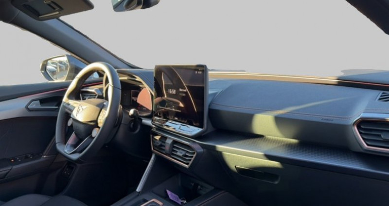 Cylindrée : 1498 cm3 Nb. Vitesse : 6 - Crochet d'attelage escamotable électriquement - Aide au maintien dans la voie (Lane Assist) - Aide au stationnement AV/AR - Bandeau AR ''Infinite Light'' intégrant le logo CUPRA lumineux, avec signature lumineuse Tri-LED et cérémonie de bienvenue - Climatisation automatique tri-zone Climatronic - Jantes alliage 18 Tempest - Lampes de lecture LED à l'AV et à l'AR - Pack Intérieur Dark Alu avec inserts cuivrés - Projecteurs full LED avec signature lumineuseTri-LED - Volant Supersports CUPRA en cuir avec boutons satellites, chauffant, avec palettes de changement de rapport - ABS - Accoudoir central AV réglable en hauteur et profondeur - Accès et démarrage mains-libres - Airbags latéraux, rideaux et central - Assistant d'intersection (Cross Traffic Assist) - Boîte de vitesse automate sequentiel à 6 vitesses - Caméra de recul - Capteur de pluie et de luminosité - Ciel de pavillon Noir - Connectivity Box - Amplification du signal et chargeur à induction - Connectivité 4x USB-C et Bluetooth - Contrôle de la traction (TCS) - CUPRA Box - CUPRA Connect - Câble de recharge sur prise domestique - Digital Cockpit 10,25 - Direction dynamique - Dossiers AR rabattables 2/3 - 1/3 et trappe à skis - Double sortie d'échappement cuivrée stylisée - Détection de fatigue et somnolence - eCall - appel d'urgence - Eclairage de bienvenue avec projection du logo CUPRA au sol et éclairage d'accompagnement - Entourage de vitres et rails de toit Noir Piano - ESC - Feux de route intelligents (Light Assist) - Fixations ISOFIX avec Top-Tether à l'AR - Front Assist avec détection des piétons et des cyclistes - Full Link sans fil ( Android Auto + Apple CarPlay) - Hayon électrique mains-libres ''Virtual Pedal'' - Kit de sécurité CUPRA - Lane Assist Plus - Pare-soleils avec miroirs de courtoisie éclairés - Projecteurs anti-brouillard triangulaires avec éclairage d'intersection - Radio numérique DAB - Régulateur de vitesse adaptatif ACC - Rétroviseur intérieur électrochrome - Seuils de porte CUPRA rétro-éclairés - Sign Assist - reconnaissance des panneaux de signalisation - Smart Ambient Light (éclairage d'ambiance intérieur intelligent) - Système audio à 6 HP avec contrôle vocal - Système d'info-divertissement avec écran tactile HD 12,9 et touches de commandes tactiles rétro- éclairées - Système de contrôle de la pression des pneus - Tapis de sol CUPRA coordonnés à la sellerie - Vitres AR surteintées - Vitres électriques AV