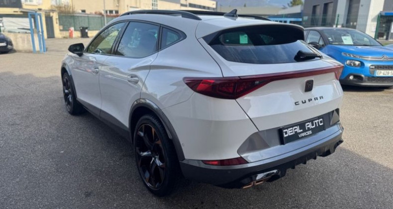 Cupra Formentor 1.4 e-HYBRID 245ch VZ DSG6, (S.U.V.), Blanc Candy, 8cv, 5 portes, mise en circulation le 16-09-2021, garantie 6 mois. 5 places, couleur intérieur : Noir, longueur : 4,45 mètres, poids en charge 2120 Kg, boîte de vitesse : automatique OPTIONS ET EQUIPEMENTS : Audio - Télécommunications - 7 Haut parleurs - Commandes vocales - Ecran tactile - Fonction MP3 - GPS Cartographique - Interface Media - Kit mains-libres Bluetooth - Prise USB - Radio numérique DAB - Services connectés - Apple Carplay / Android Auto Conduite - Aide au démarrage en côte - Capteur de luminosité - Capteur de pluie - Chassis Sport - Commande du comportement dynamique - Direction dynamique - Démarrage sans clé - Guidage pour manoeuvre de stationnement - Mode de conduite - Palettes changement vitesses au volant - Régulateur de vitesse - Régulateur de vitesse adaptatif - Suspension adaptative - Suspension à amortissement piloté - Système d'accès sans clé Extérieur - Caméra de recul - Coffre assisté électriquement - Eclairage au sol - Essuie-glace arrière - Feux arrière à LED - Feux de jour à LED - Filtre à particules - Grand toit ouvrant panoramique - JA 19 Black Copper - Jantes Alu - Ouverture du coffre mains-libres - Phares avant LED - Phares de route adaptatifs - Poignées ton carrosserie - Projecteurs Matrix LED - Radar de stationnement AR - Radar de stationnement AV - Rétroviseurs rabattables électriquement - Rétroviseurs électriques - Rétroviseurs électriques dégivrants - Système d'assistance au stationnement - Système d'éclairage intelligent à LED - Système de mesure de place disponible Intérieur - Accoudoir arrière - Accoudoir central AV - Bacs de portes arrière - Bacs de portes avant - Banquette 1/3-2/3 - Banquette AR rabattable - Boite à gants fermée - Clim automatique tri-zones - Compte tours - Eclairage d'ambiance - Ecran couleur - Filtre à Pollen - Fixations Isofix aux places arrières - Lampes de lecture à l'arrière - Lampes de lecture à l'avant - Lunette AR dégivrante - Lunette arrière surteintée - Miroir de courtoisie conducteur - Miroir de courtoisie passager - Ordinateur de bord - Porte-gobelets avant - Rétroviseur intérieur électrochrome - Sièges avant chauffants - Sièges avant éléctriques à mémoires - Siège conducteur avec réglage lombaire - Siège conducteur réglable en hauteur - Siège passager avec réglage lombaire - Siège passager réglable en hauteur - Sièges avant sport - Verrouillage centralisé à distance - Vitres arrière surteintées - Volant multifonction - Volant sport chauffant Sécurité - ABS - Airbag conducteur - Airbag passager - Airbag passager déconnectable - Airbags latéraux arrière - Airbags latéraux avant - Antipatinage - Assistance de maintien de trajectoire - Ceintures avant ajustables en hauteur - Ceintures rang2 ajustables en hauteur - Dispositif freinage automatique - Détecteur de sous-gonflage - EBD - ESP - Fonction appel d'urgence - Pack Drive Assist XL - Phares antibrouillard - Phares antibrouillard directionnels - Reconnaissance panneaux de signalisation - Système de contrôle des angles morts Autres équipements et informations : - Blanc Candy - Tissu et Similicuir Noir Asph+spq Copper - Toit ouvrant panoramique - Crochet d'attelage escamotable électriquement - Pack Hiver Ideal Auto Varces 34 rue du Peuil 38760 Varces