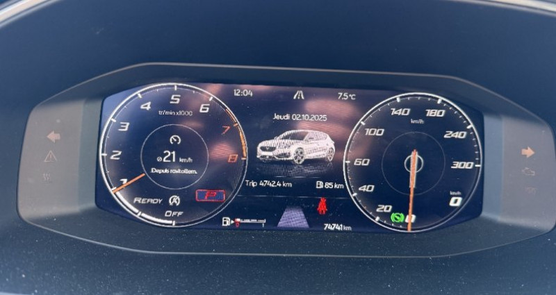 Cylindrée : 1498 cm3 Nb. Vitesse : 7 - 2 prises USB-C éclairées à l'AV et 2 à l'AR - Accès et démarrage mains-libres - Accoudoir central - Airbags - Beats Audio - Câble de recharge Mode 2 8A pour prise domestique - Caméra de recul - Capteur de pluie et de luminosité - Choix du mode de conduite - Ciel de pavillon Noir - Climatisation automatique tri-zone 'Climatronic' - Connectivity Box avec chargeur à induction - CUPRA Box- bracelet et coque de clé en fibre de carbone - CUPRA Connect Media