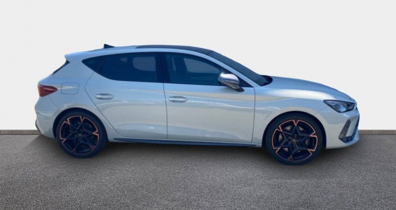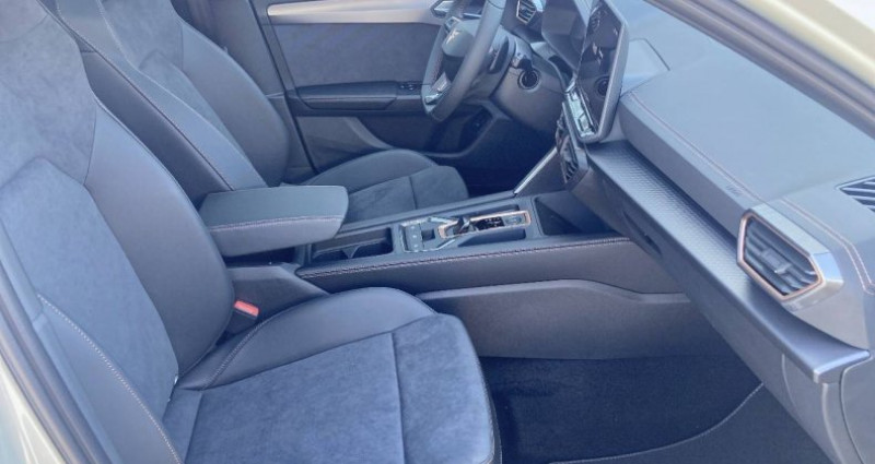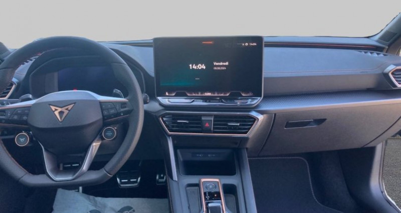 Cylindrée : 1498 cm3 Nb. Vitesse : 6 - PACK INTELLIGENCE DRIVE - GRIS TAIGA - Toit ouvrant panoramique - Jantes en alliage 19 Polar cuivrées - Jupes latérales - Câble de recharge Mode 3 pour wallbox - DMO - Aide au stationnement AV et AR - Bandeau arrière Infinite Light intégrant le logo CUPRA lumineux avec signature lumineuse Tri-LED et cérémonie de bienvenue - Climatisation automatique bizone Climatronic - Design intérieur Dynamic - Sièges baquets suédine Noir Asphalte avec poinçonnage et surpiqûres cuivrées - Logos CUPRA estampés sur les appuie-têtes - Planche de bord noire texturée avec inserts Dark Alu - Contre-portes suédine noire avec poinçonnage cuivré - Jantes en alliage 19 Polar usinées - Projecteurs Matrix LED - Projecteurs Matrix LED avec signature lumineuse Tri-LED et cérémonie de bienvenue - Volant Supersports CUPRA en cuir avec boutons satellites, chauffant avec palettes de changement de rapport - Accoudoir central AV - Accès et démarrage mains-libres - Airbags latéreaux, rideaux et central - Caméra de recul - Capteur de pluie et de luminosité - Ciel de pavillon Noir - Connectivity Box avec chargeur à induction - Connectivité 4x USB-C éclairée et Bluetooth - CUPRA Box - bracelet et coque de clé en fibre de carbone - CUPRA Connect - Câble de recharge Mode 2 pour prise domestique - Digital Cockpit 10,25 - Direction dynamique - Dossiers AR rabattables 2/3 - 1/3 - Double sortie d'échappement cuivrée stylisée - Détection de fatigue et somnolence - eCall - appel d'urgence - Eclairage de bienvenue avec projection du logo CUPRA au sol - Fixations ISOFIX avec Top-Tether à l'AR - Front Assist avec détection des piétons et cyclistes - Full Link avec CarPlay et Android Auto sans fil - Lampes de lecture à l'AV et à l'AR - Lane Assist - Light Assist - feux de route intelligents - Pare-soleils avec miroirs de courtoisie éclairés - Projecteurs anti-brouillard avec Cornering Light et Coming Home - Radio numérique DAB - Réglage en hauteur et lombaire des sièges AV - Régulateur de vitesse adaptatif ACC - Régulation adaptative du châssis DCC - Rétroviseur intérieur électrochrome - Seuils de porte CUPRA rétro-éclairés - Smart Ambient Light (éclairage d'ambiance intérieur intelligent) - Système audio à 6 HP avec contrôle vocal - Système d'info-divertissement avec écran tactile HD 12,9'' et touches de commandes tactiles rétro-éclairées - Tapis de sol en matière recyclée avec surpiqûres cuivrées CUPRA - Traffic Sign Recognition - reconnaissance des panneaux de signalisation - Vitres AR surteintées