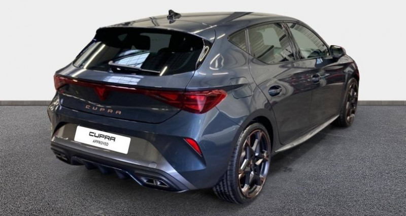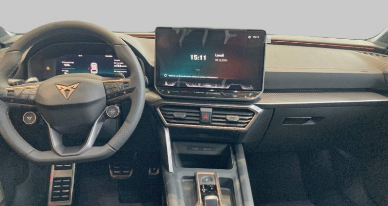 Cylindrée : 1498 cm3 Nb. Vitesse : 6 - Pack Intelligent Drive Standard -Intelligent park assist -Pre-crash : système de prévision des collisions -Système de navigation intégré à l'écran central -Pack Drive Assist XL ( Side Assist - détecteur d'angle-mort, Exit Assist, Exit Warning, Travel Assist et Lane Assist Plus) *** Avec : Intelligent Park Assist *** Avec : Pack Drive Assist XL *** Avec : Pre-Crash - Système de prévision des collisions *** Avec : Système de navigation intégré à l'écran central - PACK DRIVING PERFORMANCE 4 - Design intérieur Dynamic - Sièges baquets suédine Noir Asphalte avec poinçonnage et surpiqûres cuivrées - Logos CUPRA estampés sur les appuie-têtes - Planche de bord noire texturée avec inserts Dark Alu - Contre-portes suédine noire avec poinçonnage cuivré - Conducteur : siège électrique, dont réglage lombaire, à mémoire - Passager : réglage manuel de la hauteur et lombaire - Conducteur + passager chauffants - Toit ouvrant panoramique - GRIS MAGNETIQUE - Pack Audio SENNHEISER pour sièges baquets - Jupes latérales - Câble de recharge Mode 3 pour wallbox - DMO - SIEGES BAQUETS SUEDINE NOIR ASPHALTE - Aide au stationnement AV et AR - Bandeau arrière Infinite Light intégrant le logo CUPRA lumineux avec signature lumineuse Tri-LED et cérémonie de bienvenue - Climatisation automatique bizone Climatronic - Design intérieur Pure - Sièges sports bimatière textile et TEP Noir Asphalte - Plancher de bord noire texturée avec inserts Dark Alu - Contre-portes en TEP noir texturés - Conducteur : réglage manuel de la hauteur et lombaire - Passager : réglage manuel de la hauteur et lombaire - Jantes en alliage 18 Performance usinées - Projecteurs full LED avec signature lumineuseTri-LED - Volant Supersports CUPRA en cuir avec boutons satellites, chauffant avec palettes de changement de rapport - Accoudoir central AV - Accès et démarrage mains-libres - Airbags latéreaux, rideaux et central - Caméra de recul - Capteur de pluie et de luminosité - Ciel de pavillon Noir - Connectivity Box avec chargeur à induction - Connectivité 4x USB-C éclairée et Bluetooth - CUPRA Box - bracelet et coque de clé en fibre de carbone - CUPRA Connect - Câble de recharge Mode 2 pour prise domestique - Digital Cockpit 10,25 - Direction dynamique - Dossiers AR rabattables 2/3 - 1/3 - Détection de fatigue et somnolence - eCall - appel d'urgence - Eclairage de bienvenue avec projection du logo CUPRA au sol - Fixations ISOFIX avec Top-Tether à l'AR - Front Assist avec détection des piétons et cyclistes - Full Link avec CarPlay et Android Auto sans fil - Lampes de lecture à l'AV et à l'AR - Lane Assist - Light Assist - feux de route intelligents - Pare-soleils avec miroirs de courtoisie éclairés - Projecteurs anti-brouillard avec Cornering Light et Coming Home - Radio numérique DAB - Réglage en hauteur et lombaire des sièges AV - Régulateur de vitesse adaptatif ACC - Rétroviseur intérieur électrochrome - Seuils de porte CUPRA rétro-éclairés - Smart Ambient Light (éclairage d'ambiance intérieur intelligent) - Système audio à 6 HP avec contrôle vocal - Système d'info-divertissement avec écran tactile HD 12,9'' et touches de commandes tactiles rétro-éclairées - Tapis de sol en matière recyclée avec surpiqûres cuivrées CUPRA - Traffic Sign Recognition - reconnaissance des panneaux de signalisation - Vitres AR surteintées