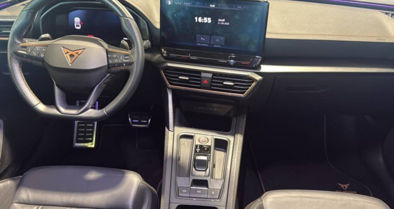Cylindrée : 1395 cm3 Nb. Vitesse : 6 - Pack Drive Assist L *** Avec : ACC - régulateur de vitesse adaptatif *** Avec : Exit Assist - assistance lors d'une sortie de place de stationnement *** Avec : Exit Warning *** Avec : Light Assist - passage automatique des feux de route aux feux de croisement *** Avec : Side Assist: Détection d'angles morts *** Avec : Traffic Sign Recognition - reconnaissance des panneaux de signalisation - Sièges baquets Cuir Noir avec surpiqures Copper et contre-portes/planche de bord en similicuir noir - Jantes en alliage 19 Laguna Seca Black - Jupes latérales CUPRA - Climatisation automatique tri-zone Climatronic - Feux AR LED avec bandeau Infinite Light - Park Assist avec aide au stationnement AV et AR - Projecteurs Full LED - Sièges BAQUETS similicuir/tissu Noir - Système de navigation 3D sur écran tactile HD12 - 2 prises USB-C éclairées à l'AV et 2 à l'AR - Accoudoir central - Accès et démarrage mains-libres - Airbags - Amortissement piloté DCC - Caméra de recul - Capteur de pluie et de luminosité - Choix du mode de conduite - Ciel de pavillon Noir - Connectivity Box avec chargeur à induction - CUPRA Box - bracelet et coque de clé en fibre de carbone - CUPRA Connect Media & Internet - Câble de recharge Mode 2 8A pour prise domestique - Digital Cockpit: combiné d'instruments digital haute résolution 10,25 - Direction dynamique - Dossiers AR rabattables 2/3 - 1/3 - eCall - appel d'urgence - Eclairage d'ambiance personnalisable - Eclairage de bienvenue avec projection du logo CUPRA au sol - Entourage de vitres Noir Glossy - Fixations ISOFIX avec Top-Tether à l'AR - Full Link avec CarPlay sans fil - Hayon électrique mains-libres ''Virtual Pedal'' - Kit anti-crevaison - Lampes de lecture à l'AV et à l'AR - Pare-soleils avec miroirs de courtoisie éclairés - Projecteurs anti-brouillard avec Cornering Light et Coming Home - Radio numérique DAB - Rails de toit Noir Glossy - Réglage en hauteur et lombaire des sièges AV - Rétroviseur intérieur électrochrome - Seuils de porte CUPRA rétro-éclairés - Système audio 7 HP avec contrôle vocal Hola Hola - Tapis de sol spécifiques CUPRA - Vitres AR surteintées - Volant CUPRA chauffant