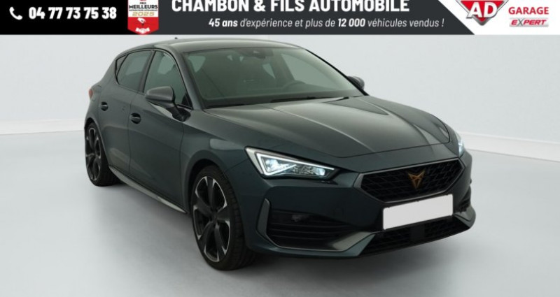Référence : 366639 Cylindrée : 1395 cm3 1.4 E-HYBRID 245 CH DSG6 VZ, hybride, gris, 08/11/2021, Pack Hiver : Sièges AV chauffants : option incluse (valeur : 325 Eur TTC), Projecteurs Full LED, Keyless Access : Accès et démarrage mains-libres, Capteur de pluie et de luminosité, Park Assist avec aide au stationnement AV et AR, Vitres AR surteintées, Kit anti-crevaison, Radio numérique DAB, Pack Drive Assist XL : Pack Drive Assist L Travel Assist - ce système combine une multitude de technologies pour maintenir le véhicule dans sa voie et s'adapter au trafic en temps réel : option incluse (valeur : 830 Eur TTC), Digital Cockpit: combiné d'instruments digital haute résolution 10, 25, Feux AR LED avec bandeau Infinite Light avec clignotants à défilement et cérémonie de bienvenue AR, Caméra de recul, Peinture Gris Magnetique : option incluse (valeur : 650 Eur TTC), Jantes en alliage 19 Palm Springs, Projecteurs anti-brouillard avec Cornering Light et Coming Home, Accoudoir central, Réglage en hauteur et lombaire des sièges AV, Dossiers AR rabattables 2/3 - 1/3, 2 prises USB-C éclairées à l'AV et 2 à l'AR, Système audio 6 HP avec contrôle vocal Hola Hola, Système de navigation 3D sur écran tactile HD10, Fixations ISOFIX avec Top-Tether à l'AR, Airbags, Climatisation automatique tri-zone Climatronic, Aide au stationnement AV/AR, Régulation adaptative du châssis DCC, Rétroviseur intérieur électrochrome, Sièges BAQUETS similicuir/tissu Noir, Choix du mode de conduite, Volant CUPRA chauffant, Câble de recharge Mode 2 8A pour prise domestique OPTIONS/EQUIPEMENTS : - Jantes alliage, Taille Jantes 19 Vendeur à contacter : CHAMBON & FILS AUTOMOBILE Téléphone à contacter : 04 77 73 23 51