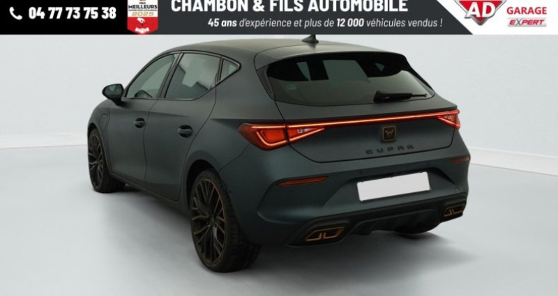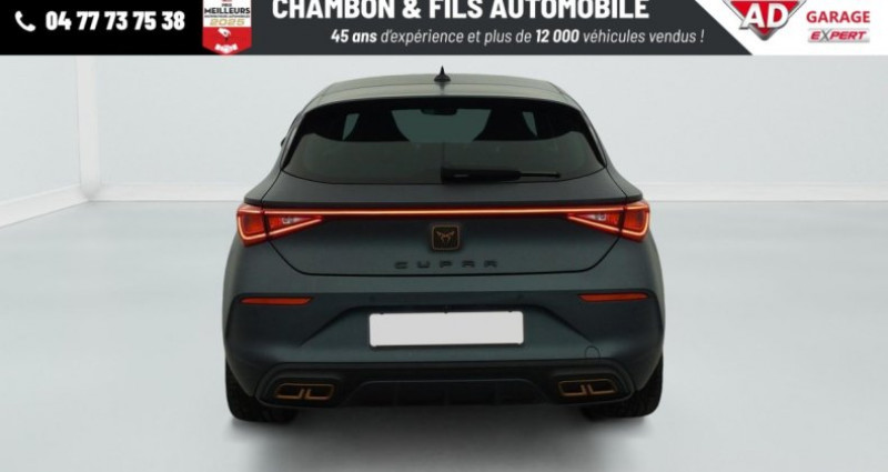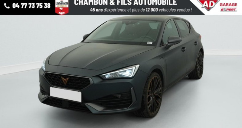 Référence : 363656 Cylindrée : 1395 cm3 1.4 E-HYBRID 245 CH DSG6 VZ, hybride, gris mat, 23/09/2021, Alarme avec fonction Safe : option incluse (valeur : 295 Eur TTC), Projecteurs Full LED, Keyless Access : Accès et démarrage mains-libres, Capteur de pluie et de luminosité, Park Assist avec aide au stationnement AV et AR, Vitres AR surteintées, Connectivity Box avec chargeur à induction, Kit anti-crevaison, Ciel de pavillon Noir, Radio numérique DAB, Pack Drive Assist XL : Pack Drive Assist L Travel Assist - ce système combine une multitude de technologies pour maintenir le véhicule dans sa voie et s'adapter au trafic en temps réel : option incluse (valeur : 810 Eur TTC), Digital Cockpit: combiné d'instruments digital haute résolution 10, 25, Feux AR LED avec bandeau Infinite Light avec clignotants à défilement et cérémonie de bienvenue AR, Eclairage de bienvenue avec projection du logo CUPRA au sol, Eclairage d'ambiance personnalisable, Full Link avec CarPlay sans fil, Caméra de recul, Peinture Gris Magnetique Mat : option incluse (valeur : 2 000 Eur TTC), Jantes en alliage 19 Laguna Seca Cooper : option incluse (valeur : 820 Eur TTC), Sièges baquets Cuir Noir avec surpiqures Copper chauffants + réglage élec. conducteur : option incluse (valeur : 1 420 Eur TTC), Airbag de genoux conducteur + Airbags latéraux AR : option incluse (valeur : 330 Eur TTC), Entourage de vitres Noir Glossy, Projecteurs anti-brouillard avec Cornering Light et Coming Home, Accoudoir central, Réglage en hauteur et lombaire des sièges AV, Dossiers AR rabattables 2/3 - 1/3, 2 prises USB-C éclairées à l'AV et 2 à l'AR, Système audio 6 HP avec contrôle vocal Hola Hola, Système de navigation 3D sur écran tactile HD10, Câble de recharge Mode 2 pour prise domestique, Fixations ISOFIX avec Top-Tether à l'AR, Airbags, Climatisation automatique tri-zone Climatronic, Aide au stationnement AV/AR, Régulation adaptative du châssis DCC, Rétroviseur intérieur électrochrome, Choix du mode de conduite, Volant CUPRA chauffant OPTIONS/EQUIPEMENTS : - Taille Jantes 19 Vendeur à contacter : CHAMBON & FILS AUTOMOBILE Téléphone à contacter : 04 77 73 23 51