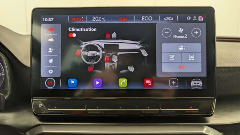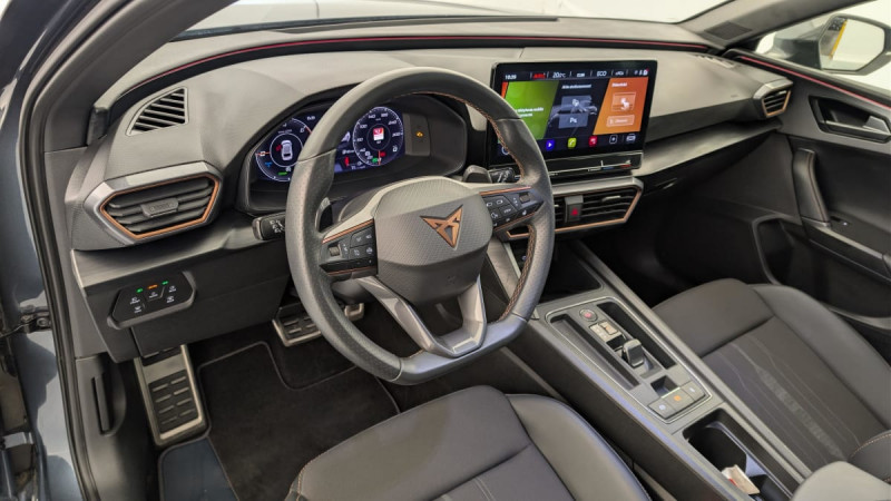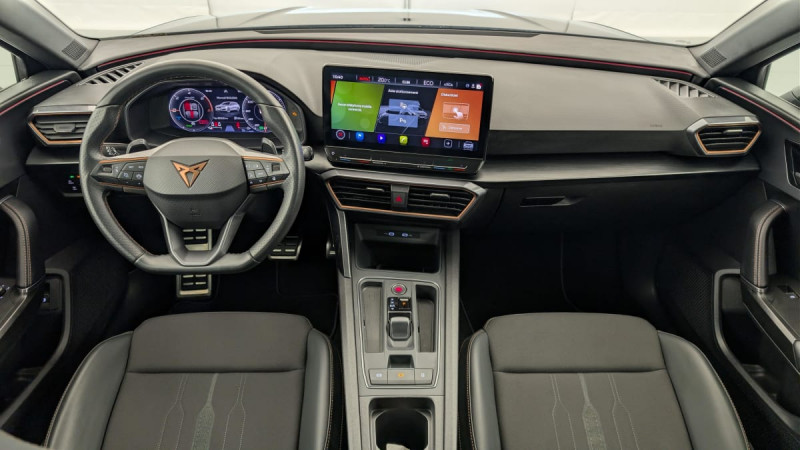 Park Assist avec aide au stationnement AV et AR / Connectivity Box avec chargeur à induction / Kit anti-crevaison / Ciel de pavillon Noir / Digital Cockpit: combiné d'instruments digital haute résolution 10,25" / Feux AR LED avec bandeau Infinite Light / Eclairage d'ambiance personnalisable / Système de navigation 3D sur écran tactile HD12" / Rails de toit Noir Glossy / Projecteurs anti-brouillard avec Cornering Light et Coming Home / Réglage en hauteur et lombaire des sièges AV / 2 prises USB-C éclairées à l'AV et 2 à l'AR / Fixations ISOFIX avec Top-Tether à l'AR / Jantes en alliage 18" Performance usinées / Rétroviseur intérieur électrochrome / Sièges BAQUETS similicuir/tissu Noir / Volant CUPRA chauffant / Câble de recharge Mode 2 8A pour prise domestique / Accès et démarrage mains-libres / Système audio 7 HP avec contrôle vocal "Hola Hola" / Amortissement piloté DCC /