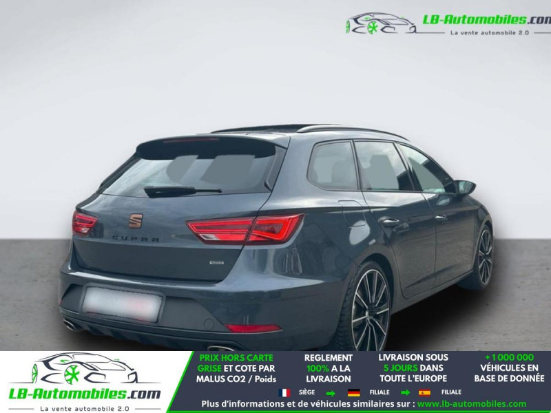 Référence : 1184432 Vos Avantages chez LB-AUTOMOBILES.com / Prix affiché TTC Livré hors carte grise / Livraison sous 10 jours dans toute la France hors 31 / Pas d?avance de frais paiement du véhicule 100% à la livraison par virement. Cupra Leon ST Neuf remisée, Cupra Leon ST Occasion Toulouse Beaupuy 31850, Cupra Leon ST Véhicule sorti de réseau collaborateur, Cupra Leon ST import, Cupra Leon ST importateur, Cupra Leon ST Livraison possible dans toute la France sous 5 jours, Cupra Leon ST, Cupra Leon ST Location Option Achat, Cupra Leon ST LLD, Cupra Leon ST Longue Durée, Cupra Leon ST TVA récupérable. Possibilité d'extension de garantie 12, 24,36 mois, Pour tout autres voitures import neufs ou occasions collaborateur fortement remisée, Mandataire Audi, Mandataire BMW, Mandataire Volkswagen, Mandataire Mercedes, Mandataire Peugeot Espagne, Mandataire Renault Espagne, Porsche import, Mandataire Citroën Espagne, Mandataire Seat Espagne, n'hésitez pas à nous contacter. « Sous réserve de vente préalable et erreur de saisie » Principaux équipements : - 4x4 - ABS - Accoudoir - Android Auto - Antidémarrage - Apple CarPlay - Avertisseur de franchissement de ligne - Bluetooth - Boîte de vitesses robotisée - Capteur de lumière - Capteur de pluie - Carnet d'entretien - Commande vocale - Contrôle de la pression des pneus - Direction assistée - Éclairage d'ambiance - Écran tactile - ESP - Fermeture centralisée - Feux de jour LED - GPS - Isofix - Jantes alliage - Kit mains libres - Lecteur CD - Ordinateur de bord - Package hiver - Phare antibrouillard - Phares LED - Port USB - Radio DAB - Régulateur de vitesse adaptatif - Rétroviseur extérieur électrique - Rétroviseur intérieur anti-éblouissement automatique - Rétroviseurs extérieurs rabattables électriquement - Sièges chauffants - Support lombaire - Suspension sport - Système de nettoyage des phares - Système de reconnaissance des panneaux de signalisation - Système Stop & Start - Toit ouvrant - Toit panoramique - Tuner/radio - Véhicule non-fumeur - Verrouillage centralisé sans clé - Vitres électriques - Vitres teintées - Volant en cuir - Volant multifonction