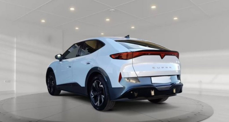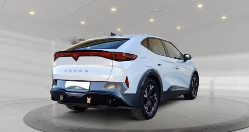 Première Main : Oui Nb. Vitesse : 8 Frein de stationnement électrique avec fonction de maintien automatique Rétroviseurs extérieurs électriques, chauffants et rabattables, avec fonction d'abaissement et éclairage d'accueil Régulateur de vitesse adaptatif (ACC/PCC) avec contrôle prédictif de la vitesse Régulateur de vitesse adaptatif (ACC) Interface Bluetooth intégrée avec fonction mains libres Lien complet (MirrorLink - Apple CarPlay et Android Auto) Chargeur à induction pour smartphone Climatisation Climatronic 1 zone Tableau de bord numérique (cockpit virtuel) système d'airbag de tête Détection de la fatigue caméra de recul Phares entièrement à LED Sièges baquets sport avant avec appuie-tête intégrés Assistance au maintien de voie Assistance angle mort avec aide au stationnement - assistance au changement de voie et avertissement de sortie Ports de chargement USB (2 x Type C) pour la 2e rangée de sièges Interface USB en façade (2 ports - Type C) forfait hiver 7 haut-parleurs L'airbag passager peut être désactivé. Airbag côté conducteur/passager Protection acoustique des piétons - son extérieur (e-sound / AVAS) Pneus toutes saisons/toutes conditions météorologiques Éclairage d'ambiance LED Préparation pour attelage Système de freinage antiblocage (ABS) Contrôle de traction (ASR) diffusion audio Bluetooth Bord Moteur électrique 210 kW (continu 89 kW) Contrôle électronique de stabilité (ESC) Sélection du profil de conduite (Profil de conduite CUPRA) Vitres électriques avant et arrière à commande par simple pression Pare-brise chauffant Éclairage LED au niveau des pieds Batterie haute tension 82 kWh brut / 77 kWh net Feux arrière entièrement à LED avec bande lumineuse (Infinite Light) Système d'infodivertissement avec écran tactile couleur de 15 pouces Rétroviseur intérieur à fonction anti-éblouissement automatique Réseau de véhicules intelligents (Car2X) Points de fixation Isofix pour sièges enfant sur le siège passager avant et les sièges arrière (y compris les sièges enfant i-Size) Jantes LM 8x19 (Vulcano - noir / argent - finition diamant) Volant (CUPRA Supersport - cuir) multifonction avec fonction de changement de vitesse Capteur de lumière et de pluie Console centrale avant avec accoudoir central, porte-gobelets, compartiment de rangement et aérateurs arrière. Système d'appel d'urgence Pédales en aluminium Système de pré-collision Réception radio numérique (DAB+) Empattement standard système de surveillance de la pression des pneus Dossier de siège arrière fractionnable/rabattable (1/3-2/3) Inscription en cuivre sur le hayon Airbag latéral Airbag latéral central avant (Airbag central) Réglage en hauteur du siège avant gauche Réglage en hauteur du siège avant droit Revêtement de siège / sellerie : tissu Soul Black poignées de porte intérieures en cuivre reconnaissance des panneaux de signalisation Verrouillage centralisé / Système de démarrage sans clé (bouton marche/arrêt) Type de transmission : Propulsion arrière Transmission pour véhicule électrique Système de chauffage/climatisation : Pompe à chaleur accoudoir central arrière Direction progressive Sièges avant chauffants Prise de courant 12 V dans le coffre/l'espace de chargement Prise 12V en façade Système Front Assist avec fonction de freinage d'urgence en ville Système d'avertissement pour le système de ceinture de sécurité