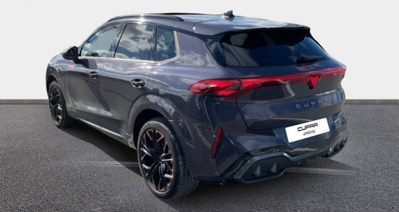 Cylindrée : 1498 cm3 Nb. Vitesse : 6 - Pack Intelligent Drive - Intelligent Park Assist : système d'aide active au stationnement - Feux de route intelligents (light assist) - Top view camera (caméra 360°) - Pre-Crash : système de prévision des collisions - Side Assist, Exit Assist et Exit Warning - Travel Assist et Lane Assist Plus *** Avec : Aides à la conduite *** Avec : Top View Camera 360° - Pack Digital Drive Affichage tête-haute, Navigation *** Avec : Affichage tête haute *** Avec : Navigation - Design Intérieur High Canyon (sièges baquets cuir Rouge Bordeaux avec surpiqûres cuivrées) - Logos CUPRA embossés sur les appuie-têtes - Planche de bord Rouge Bordeaux avec aérateurs cuivrés - Contre-portes en TEP noir texturé - Ciel de pavillon noir - Siège conducteur : chauffant avec réglage électrique à mémoire, y compris réglage lombaire - Siège passager : chauffant avec réglage électrique, y compris lombaire - Toit ouvrant panoramique - Jantes 20'' Hadron cuivrées - Pack Immersive by SENNHEISER - Pneu Performance BRIDGESTONE - Câble de recharge Mode 3 type 2 - CUPRA Connect Plus 3 ans - DMO - Aide au maintien dans la voie (Lane Assist) - Aide au stationnement AV et AR - Bandeau AR ''Infinite Light'' intégrant le logo CUPRA lumineux avec signature lumineuse Tri-LED et cérémonie de bienvenue - Climatisation automatique tri-zone Climatronic - Jantes 19'' Cosmic usinées - Lampes de lecture LED à l'AV et à l'AR - Pack Performance DCC + Matrix LED Ultra - Projecteurs Matrix LED Ultra avec signature lumineuse Tri-LED et cérémonie de bienvenue - Volant Supersports CUPRA en cuir avec boutons satellites, chauffant avec palettes de changement de rapport - Accoudoir central AV - Accès et démarrage mains-libres - Airbags latéreaux, rideaux et central - Alarme antivol avec fonction SAFE - Batterie garantie 8 ans ou 160 000 km - Caméra de recul - Capteur de pluie et de luminosité - Ciel de pavillon Noir - Connectivity Box avec chargeur à induction - Connectivité 4x USB-C et Bluetooth - CUPRA Box - CUPRA Connect - Câble de recharge sur prise domestique - Design Intérieur Deep Ocean (sièges baquets TEP + textile Bleu Acier) - Logos CUPRA estampés sur les appuie-têtes - Planche de bord bleu acier texturée avec aérateurs cuivrés - Contre-portes en TEP noir texturé - Ciel de pavillon noir - Sièges conducteur et passager avec réglage manuel en hauteur et lombaire - Digital Cockpit 10,25 Medium avec 4 affichages personnalisables - Direction dynamique - Dossiers AR rabattables 2/3 - 1/3 - Détection de fatigue et somnolence - eCall - appel d'urgence - Eclairage de bienvenue avec projection du logo CUPRA au sol - Extension de garantie 3 ans / 100 000 km - Fixations ISOFIX avec Top-Tether à l'AR - Front Assist avec détection des piétons et cyclistes - Full Link sans fil ( Android Auto + Apple CarPlay) - Garantie 2 ans, kilométrage illimité - Hayon électrique mains-libres ''Virtual Pedal'' - Kit de sécurité CUPRA - Pare-choc ton caisse avec extracteur de couleur contrastante - Pare-soleils avec miroirs de courtoisie éclairés - Projecteurs anti-brouillard triangulaires avec éclairage d'intersection et éclairage d'accompagnement - Radio numérique DAB - Reconnaissance des panneaux de signalisation (Sign Assist) - Régulateur de vitesse adaptatif ACC - Régulation adaptative du châssis DCC - Rétroviseur intérieur électrochrome - Seuils de porte CUPRA rétro-éclairés - Smart Ambient Light (éclairage d'ambiance intérieur intelligent) - Système audio à 9 HP avec contrôle vocal - Système d'info-divertissement avec écran tactile HD 12,9'' et touches de commandes tactiles rétro-éclairées - Tapis de sol CUPRA recyclés - Vitres AR surteintées