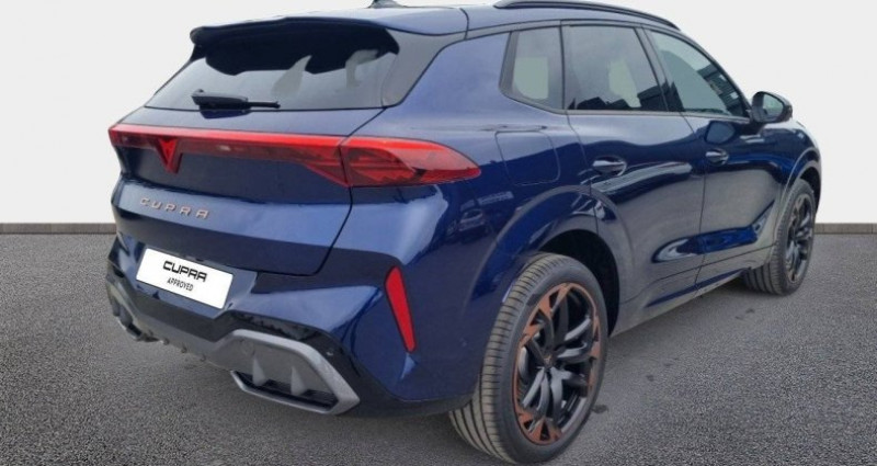 Cylindrée : 1498 cm3 Nb. Vitesse : 6 - Pack Intelligent Drive Full - Intelligent Park Assist : système d'aide active au stationnement - Feux de route intelligents (light assist) - Top view camera (caméra 360°) - Pre-Crash : système de prévision des collisions - Side Assist, Exit Assist et Exit Warning - Travel Assist et Lane Assist Plus *** Avec : Feux de route intelligents (Light Assist) *** Avec : Intelligent Park Assist - système d'aide active au stationnement *** Avec : Pre-Crash - Système de prévision des collisions *** Avec : Side Assist, Exit Assist et Exit Warning *** Avec : Top View Camera 360° *** Avec : Travel Assist et Lane Assist Plus - Pack Digital Drive - Affichage tête-haute - Digital Cockpit 10,25 Medium avec 4 affichages personnalisables - Navigation *** Avec : Affichage tête haute *** Avec : Digital Cockpit 10,25 Medium avec 4 affichages personnalisables *** Avec : Navigation - Toit ouvrant panoramique - Design Intérieur Moon Light (sièges baquets suédine + TEP Noir Asphalte surpiqûres cuivrées) - Logos CUPRA estampés sur les appuie-têtes - Planche de bord noir texturée avec aérateurs cuivrés - Contre-portes TEP noir texturé - Ciel de pavillon noir - Siège conducteur : chauffant avec réglage électrique à mémoire, y compris réglage lombaire - Siège passager : chauffant avec réglage électrique, y compris lombaire - Jantes 20'' Vortex cuivrées - Crochet d'attelage escamotable électriquement - BLEU COSMOS - Pack Immersive by SENNHEISER - Câble de recharge Mode 3 type 2 - CUPRA Connect Plus 3 ans - EXTENSION DE GARANTIE 3 ANS / 100'000 KM - PLAN D'AFFECTATION RESEAU MAI - SEAT CONNECT PLUS 3 ANS - SIEGES BAQUETS SUEDINE NOIR ASPHALTE - STOCK IMPORTATEUR - Aide au maintien dans la voie (Lane Assist) - Aide au stationnement AV et AR - Bandeau AR ''Infinite Light'' intégrant le logo CUPRA lumineux avec signature lumineuse Tri-LED et cérémonie de bienvenue - Climatisation automatique tri-zone Climatronic - Jantes 19'' Cosmic usinées - Lampes de lecture LED à l'AV et à l'AR - Projecteurs Matrix LED Ultra - Volant Supersports CUPRA en cuir avec boutons satellites, chauffant avec palettes de changement de rapport - Accoudoir central AV - Accès et démarrage mains-libres - Airbags latéreaux, rideaux et central - Alarme antivol avec fonction SAFE - Banquette AR coulissante 2/3 - 1/3 - Batterie garantie 8 ans ou 160 000 km - Caméra de recul - Capteur de pluie et de luminosité - Ciel de pavillon Noir - Connectivity Box avec chargeur à induction - Connectivité 4x USB-C et Bluetooth - CUPRA Box - CUPRA Connect - Câble de recharge sur prise domestique - Design Intérieur Deep Ocean (sièges baquets TEP + textile Bleu Acier) - Logos CUPRA estampés sur les appuie-têtes - Planche de bord bleu acier texturée avec aérateurs cuivrés - Contre-portes en TEP noir texturé - Ciel de pavillon noir - Sièges conducteur et passager avec réglage manuel en hauteur et lombaire - Digital Cockpit 10,25 simple avec 2 affichages personnalisables - Direction dynamique - Dossiers AR rabattables 2/3 - 1/3 - Détection de fatigue et somnolence - eCall - appel d'urgence - Eclairage de bienvenue avec projection du logo CUPRA au sol - Extension de garantie 3 ans / 100 000 km - Fixations ISOFIX avec Top-Tether à l'AR - Front Assist avec détection des piétons et cyclistes - Full Link sans fil ( Android Auto + Apple CarPlay) - Garantie 2 ans, kilométrage illimité - Hayon électrique mains-libres ''Virtual Pedal'' - Kit de sécurité CUPRA - Pare-choc ton caisse avec extracteur de couleur contrastante - Pare-soleils avec miroirs de courtoisie éclairés - Projecteurs anti-brouillard triangulaires avec éclairage d'intersection et éclairage d'accompagnement - Radio numérique DAB - Rails de toit Noir - Reconnaissance des panneaux de signalisation (Sign Assist) - Régulateur de vitesse adaptatif ACC - Rétroviseur intérieur électrochrome - Seuils de porte CUPRA rétro-éclairés - Smart Ambient Light (éclairage d'ambiance intérieur intelligent) - Système audio à 9 HP avec contrôle vocal - Système d'info-divertissement avec écran tactile HD 12,9'' et touches de commandes tactiles rétro-éclairées - Tapis de sol en matière recyclée - Vitres AR surteintées