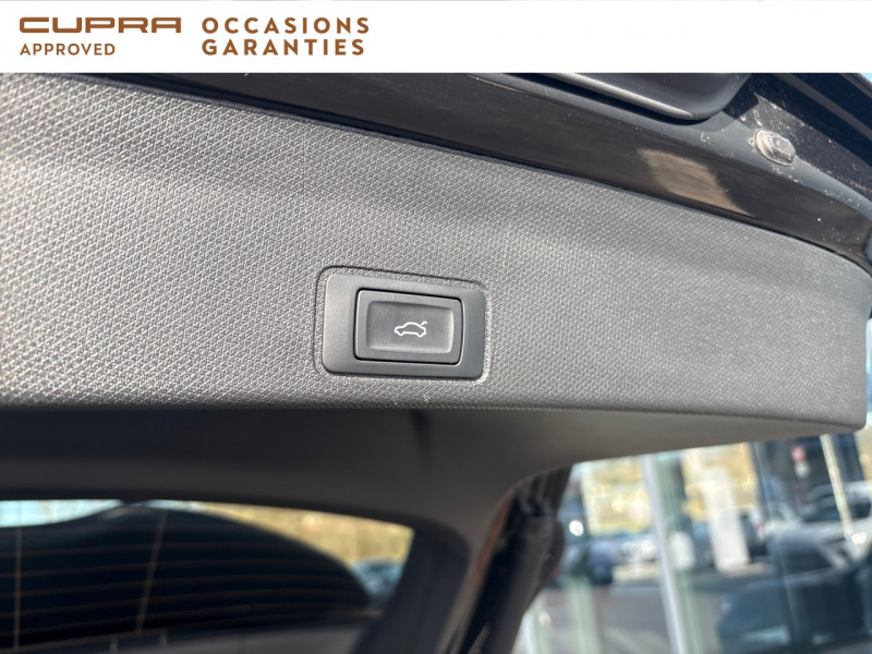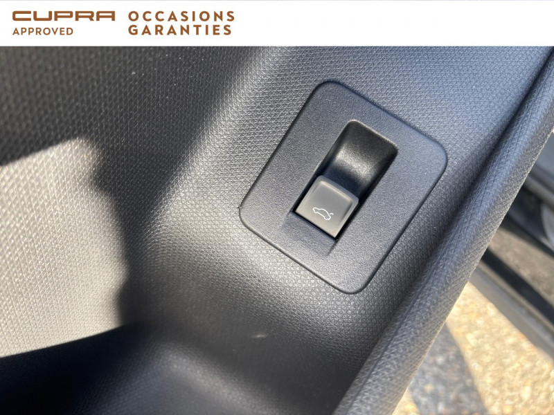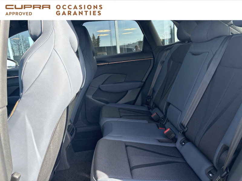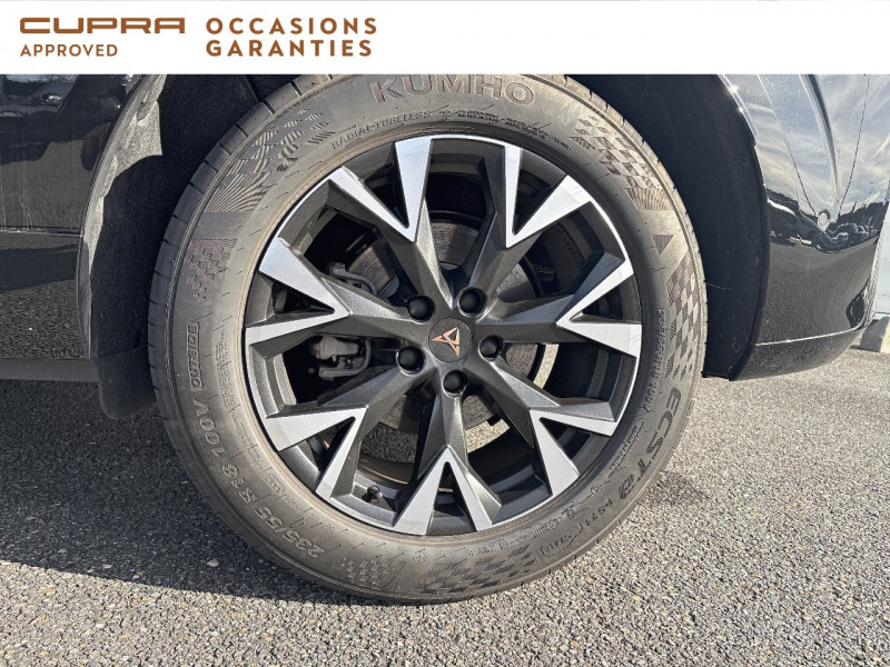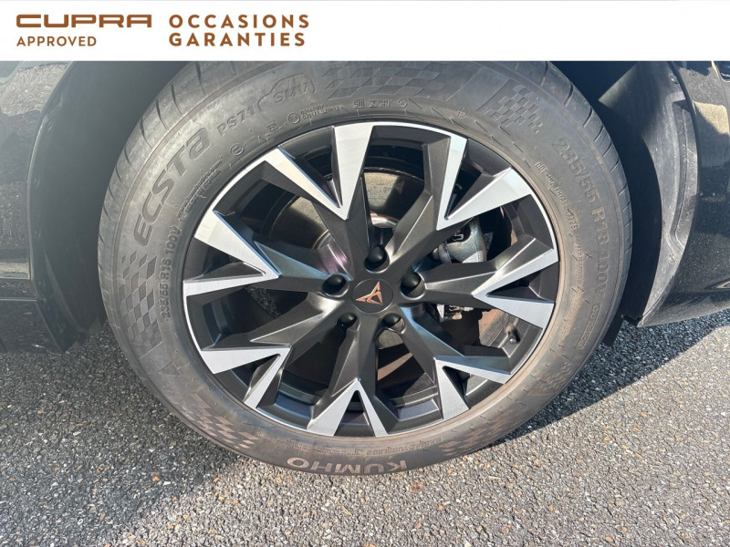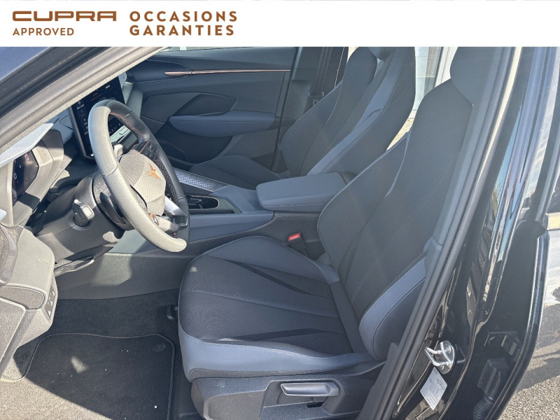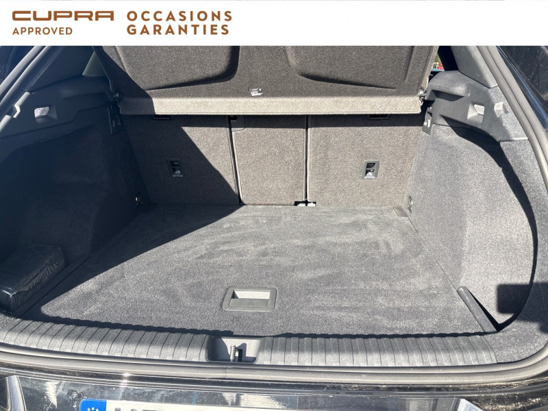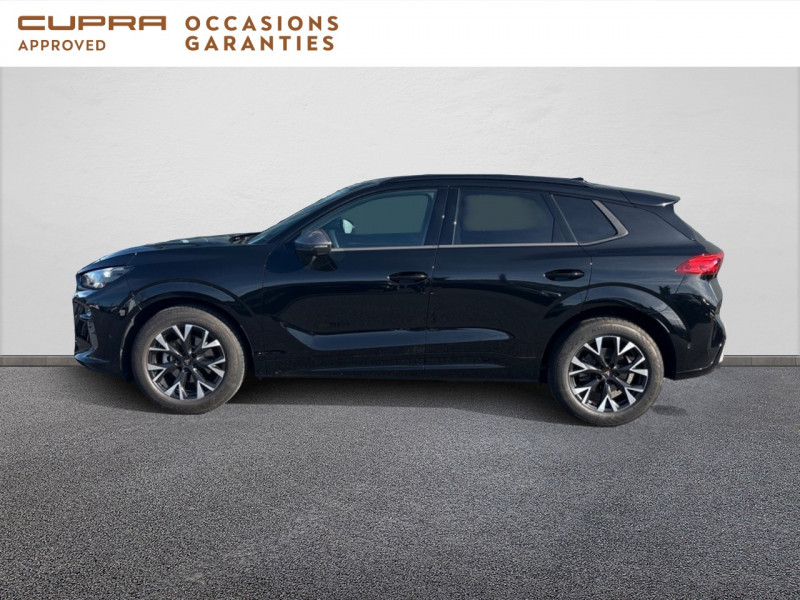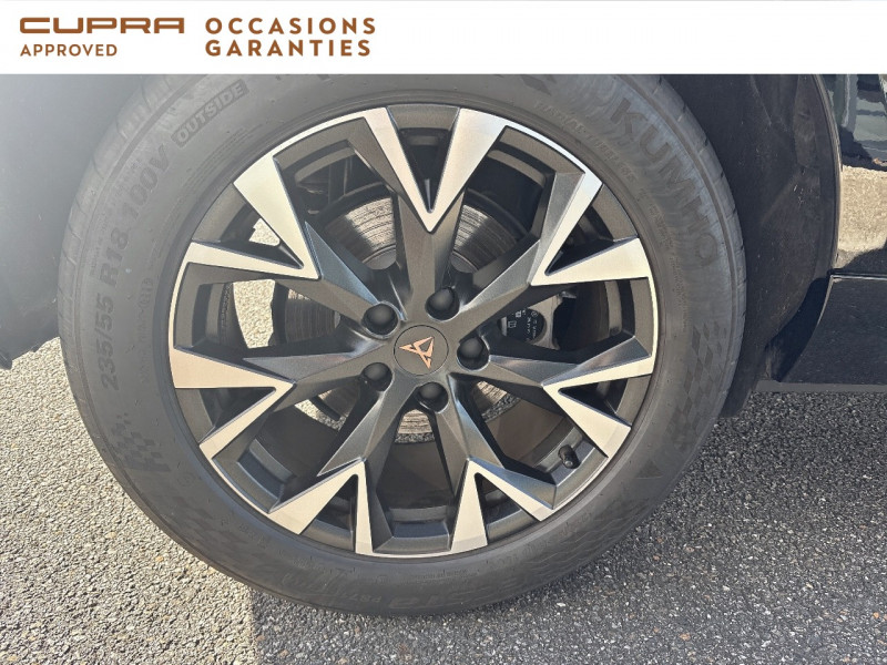 Aide au maintien dans la voie (Lane Assist) / Bandeau AR ''Infinite Light'' intégrant le logo CUPRA lumineux, avec signature lumineuse Tri-LED et cérémonie de bienvenue / Jantes 18'' Atomic anthracites / Lampes de lecture LED à l'AV et à l'AR / Projecteurs full LED avec signature lumineuseTri-LED / Volant Supersports CUPRA en cuir avec boutons satellites, chauffant, avec palettes de changement de rapport / Accès et démarrage mains-libres / Alarme antivol avec fonction SAFE / Boîte de vitesse automate sequentiel à 7 vitesses / Ciel de pavillon Noir / Connectivity Box avec chargeur à induction / Connectivité 4x USB-C et Bluetooth / Contrôle de la traction (TCS) / CUPRA Box / CUPRA Connect / Digital Cockpit 10,25" simple avec 2 affichages personnalisables / Direction dynamique / Détection de fatigue et somnolence / Eclairage de bienvenue avec projection du logo CUPRA au sol / ESC / Fixations ISOFIX avec Top-Tether à l'AR / Front Assist avec détection des piétons et cyclistes / Full Link sans fil ( Android Auto + Apple CarPlay) / Hayon électrique mains-libres ''Virtual Pedal'' / Kit de sécurité CUPRA / Pare-choc ton caisse avec extracteur de couleur contrastante / Pare-soleils avec miroirs de courtoisie éclairés / Projecteurs anti-brouillard triangulaires avec éclairage d'intersection et éclairage d'accompagnement / Rails de toit Noir / Rétroviseur intérieur électrochrome / Seuils de porte CUPRA rétro-éclairés / Smart Ambient Light (éclairage d'ambiance intérieur intelligent) / Système audio à 9 HP avec contrôle vocal / Système d'info-divertissement avec écran tactile HD 12,9" et touches de commandes tactiles rétro- éclairées / Tapis de sol en matière recyclée