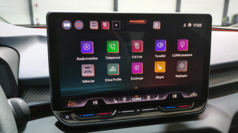 25" simple / 9" et touches de commandes tactiles rétro- éclairées / Accès et démarrage mains-libres / Aide au maintien dans la voie (lane assist) / Alarme antivol / Avec palettes de changement de rapport / Avec signature lumineuse tri-led et cérémonie de bienvenue / Bandeau ar ''infinite light'' intégrant le logo cupra lumineux / Boîte de vitesse automate sequentiel à 7 vitesses / Ciel de pavillon noir / Connectivité 4x usb-c et bluetooth / Connectivity box avec chargeur à induction / Contrôle de la traction (tcs) / Design intérieur deep ocean (sièges baquets tep + textile bleu acier) - logos cupra estampés sur les appuie-têtes - planche de bord bleu acier texturée avec aérateurs cuivrés - contre-portes en tep noir texturé - ciel de pavillon noir - sièges conducteur et passager avec réglage manuel en hauteur et / Détection de fatigue et somnolence / Digital cockpit 10 / Direction dynamique / Eclairage de bienvenue avec projection du logo cupra au sol / Esc / Fixations isofix avec top-tether à l'ar / Front assist avec détection des piétons et cyclistes / Full link sans fil ( android auto + apple carplay) / Garantie 1 an supplémentaire (2+1) ou 90 000 km / Hayon électrique mains-libres ''virtual pedal'' / Jantes alliage 19" spectrum usinées / Peinture vernie bleu fjord / Projecteurs anti-brouillard triangulaires avec éclairage d'intersection et éclairage d'accompagnement / Projecteurs full led avec signature lumineusetri-led / Rails de toit noir / Rétroviseur intérieur électrochrome / Rideaux et central / Seuils de porte cupra rétro-éclairés / Système audio à 9 hp avec contrôle vocal / Système d'info-divertissement avec écran tactile hd 12 / Volant supersports cupra en cuir avec boutons satellites