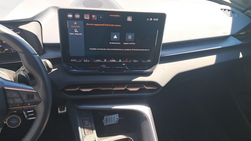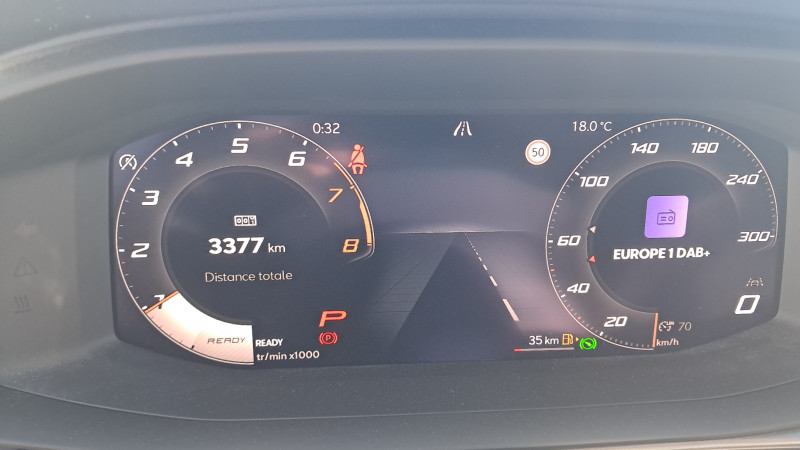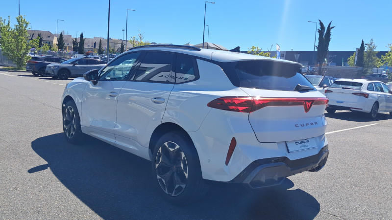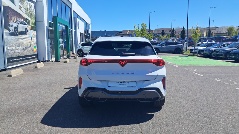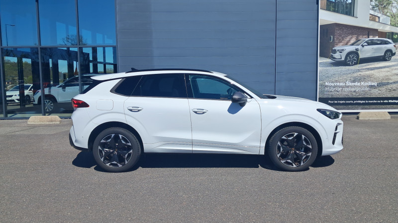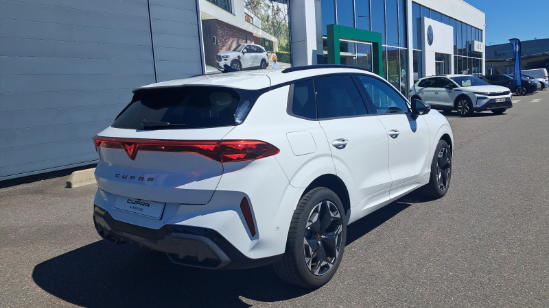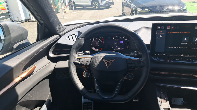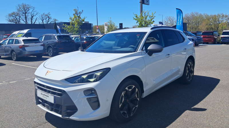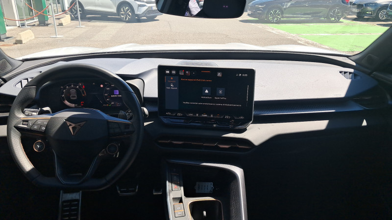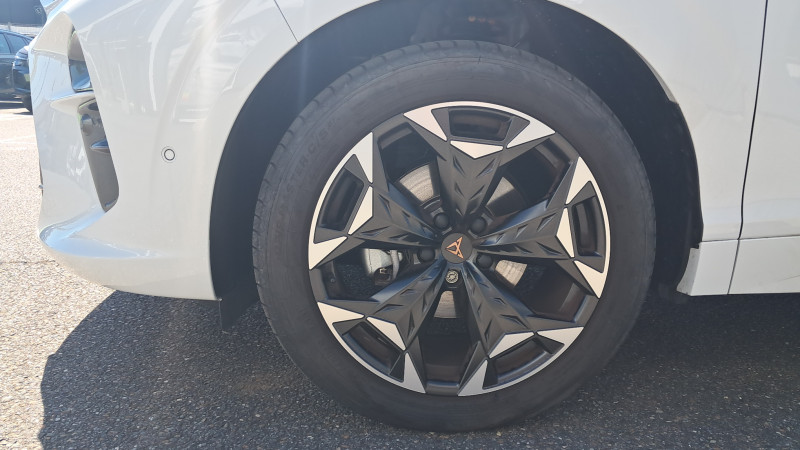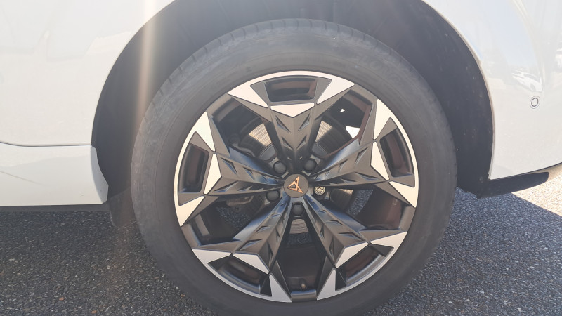 Aide au maintien dans la voie (Lane Assist) / Bandeau AR ''Infinite Light'' intégrant le logo CUPRA lumineux, avec signature lumineuse Tri-LED et cérémonie de bienvenue / Jantes 18'' Atomic usinées / Lampes de lecture LED à l'AV et à l'AR / Projecteurs full LED avec signature lumineuseTri-LED / Volant Supersports CUPRA en cuir avec boutons satellites, chauffant, avec palettes de changement de rapport / Accès et démarrage mains-libres / Alarme antivol avec fonction SAFE / Ciel de pavillon Noir / Connectivity Box avec chargeur à induction / Connectivité 4x USB-C et Bluetooth / CUPRA Box / CUPRA Connect / Digital Cockpit 10,25" Medium avec 2 affichages personnalisables / Direction dynamique / Détection de fatigue et somnolence / Eclairage de bienvenue avec projection du logo CUPRA au sol / Fixations ISOFIX avec Top-Tether à l'AR / Front Assist avec détection des piétons et cyclistes / Full Link sans fil ( Android Auto + Apple CarPlay) / Hayon électrique mains-libres ''Virtual Pedal'' / Kit de sécurité CUPRA / Pare-choc ton caisse avec extracteur de couleur contrastante / Pare-soleils avec miroirs de courtoisie éclairés / Projecteurs anti-brouillard triangulaires avec éclairage d'intersection et éclairage d'accompagnement / Rails de toit Noir / Rétroviseur intérieur électrochrome / Seuils de porte CUPRA rétro-éclairés / Smart Ambient Light (éclairage d'ambiance intérieur intelligent) / Système audio à 9 HP avec contrôle vocal / Système d'info-divertissement avec écran tactile HD 12,9" et touches de commandes tactiles rétro- éclairées / Tapis de sol en matière recyclée