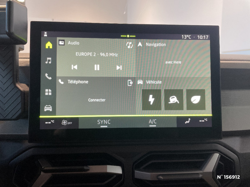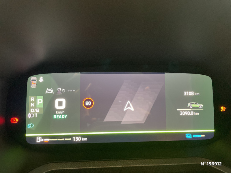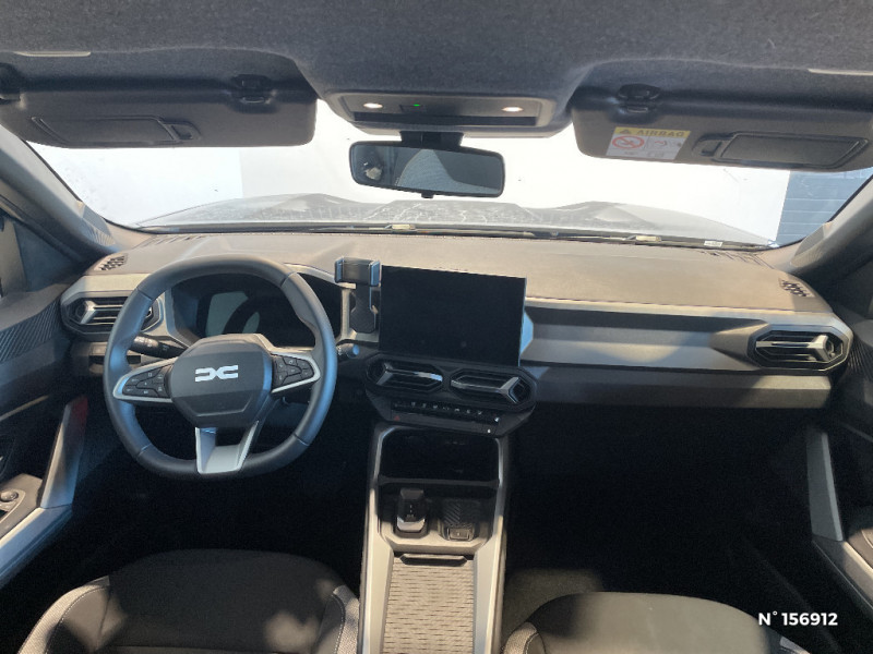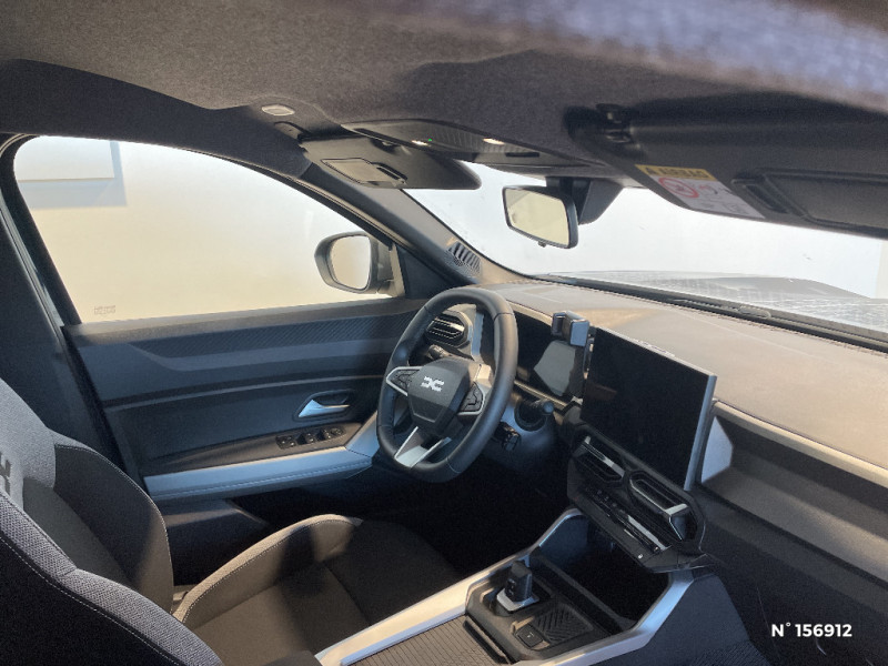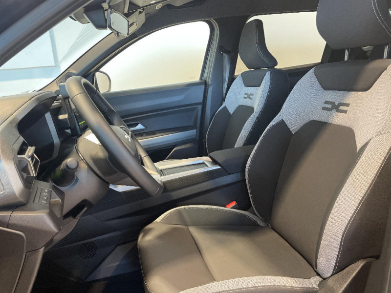 Boucliers ton carosserie / Système de contrôle de traction (TCS) / Boîte de vitesse automatique / Console Centrale avec porte-gobelets, accoudoir et rangement réfrigéré / Peinture opaque / Système de freinage d'urgence avancé (pieton, deux-rorues et intersection) / Antenne requin / Sellerie tissu avec logo Dacia / Tableau de bord digital 10" / Siège conducteur semi - électrique / Kit de gonflage / Plancher de coffre plat / Allumage des feux automatique et essuie-glace automatiques / Commutation automatique feux de croisement/route / Feux de croisement à LED / Appel SOS (E-call) / Avertissement distance de sécurité / Système de contrôle de trajectoire (ESC) et aide au démarrage en côte / Signature lumineuse en "Y" à LED / Répétiteurs latéraux à LED / Alerte franchissement de ligne et assistant maintien dans la voie / My Safety Switch (bouton de déconnexion des aides à la conduite) / Media Nav Live (écran 10,1'', Navigation avec trafic en temps réel + Système audio 3D Arkamys, 6HP) / Coques de rétroviseurs Gris Megalithe / Jantes alliage diamantées 18'' TAGASAN / Banquette AR 40/20/40 et fonction Easy Fold 60/40 / Barres de toit longitudinales