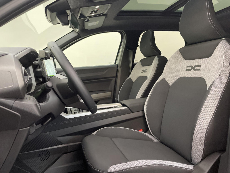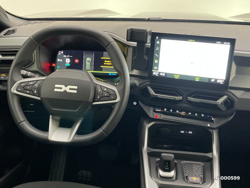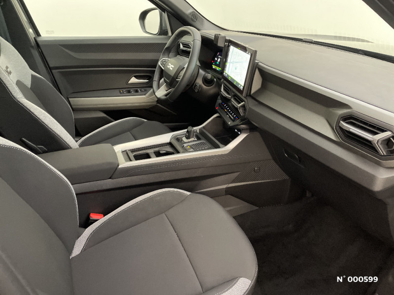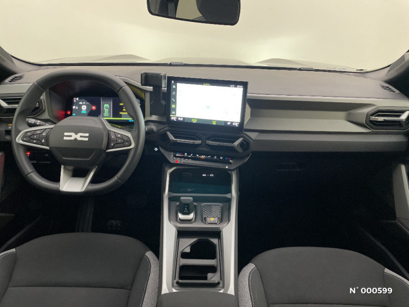 Peinture opaque / Media Nav Live (écran 10,1'', Navigation avec trafic en temps réel + Système audio 3D Arkamys, 6HP) / Coques de rétroviseurs Gris Megalithe / Jantes alliage diamantées 18'' TAGASAN / Système de freinage d'urgence avancé (pieton, deux-rorues et intersection) / Antenne requin / Sellerie tissu avec logo Dacia / Tableau de bord digital 10" / Siège conducteur semi - électrique / Banquette AR 40/20/40 et fonction Easy Fold 60/40 / Système de contrôle de traction (TCS) / Boîte de vitesse automatique / Console Centrale avec porte-gobelets, accoudoir et rangement réfrigéré / Boîte de vitesse automatique 6 / Système de contrôle de trajectoire (ESC) et aide au démarrage en côte / Signature lumineuse en "Y" à LED / Répétiteurs latéraux à LED / Alerte franchissement de ligne et assistant maintien dans la voie / My Safety Switch (bouton de déconnexion des aides à la conduite) / Barres de toit longitudinales / Boucliers ton carosserie / Kit de gonflage / Plancher de coffre plat / Allumage des feux automatique et essuie-glace automatiques / Commutation automatique feux de croisement/route / Feux de croisement à LED / Appel SOS (E-call) / Avertissement distance de sécurité