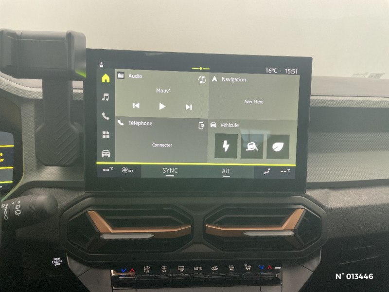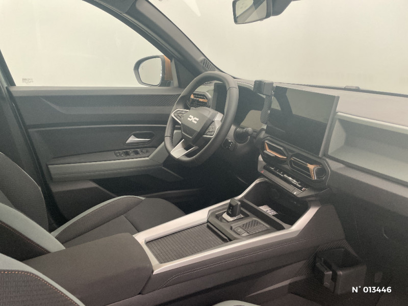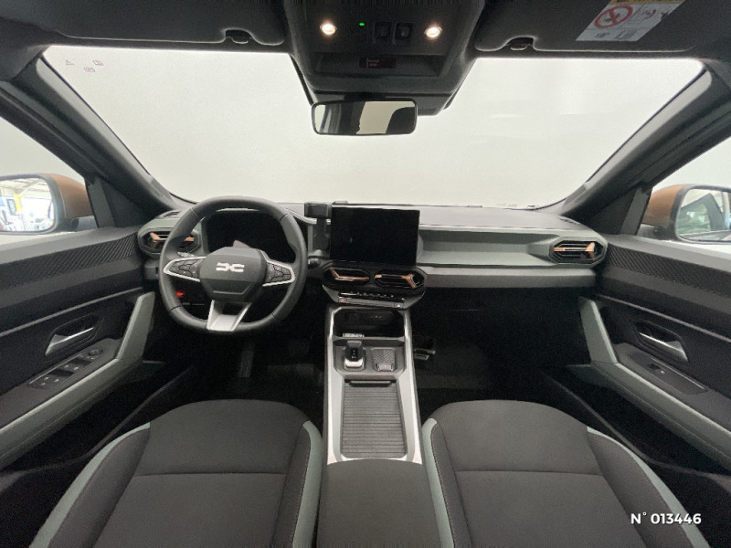 Jantes alliage semi-diamantées 18'' TAGASAN / Contrôle de trajectoire en descente avancé / Système de freinage d'urgence avancé (piéton, deux-roues et intersection) / Antenne requin / Tableau de bord digital 10" / Banquette AR 40/20/40 et fonction Easy Fold 60/40 / Système de contrôle de traction (TCS) / Boîte de vitesse automatique 6 / Console Centrale avec porte-gobelets, accoudoir et rangement réfrigéré / Peinture opaque / Kit de gonflage / Plancher de coffre plat / Allumage des feux automatique et essuie-glace automatiques / Commutation automatique feux de croisement/route / Feux de croisement à LED / Siège passager réglable en hauteur + lombaire conducteur / Appel SOS (E-call) / Avertissement distance de sécurité / Boucliers ton carosserie / Signature lumineuse en "Y" à LED / Répétiteurs latéraux à LED / Alerte franchissement de ligne et assistant maintien dans la voie / Ouverture du hayon manuelle / My Safety Switch (bouton de déconnexion des aides à la conduite) / Sellerie TEP "Microcloud"avec logo Dacia / Media Nav Live (écran 10,1'', Navigation avec trafic en temps réel + Système audio 3D Arkamys, 6HP) / Coques de rétroviseurs Brun Cuivré
