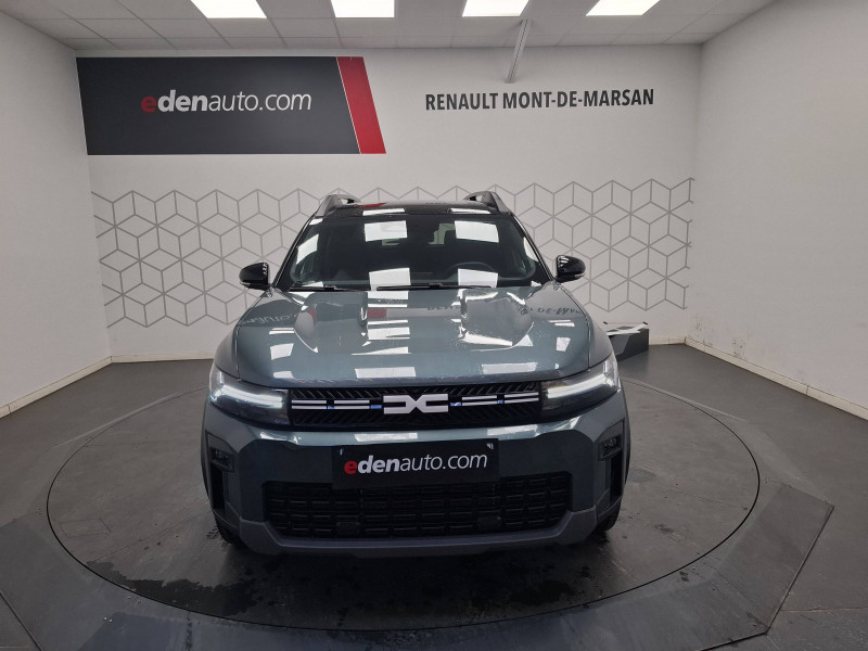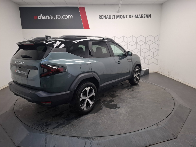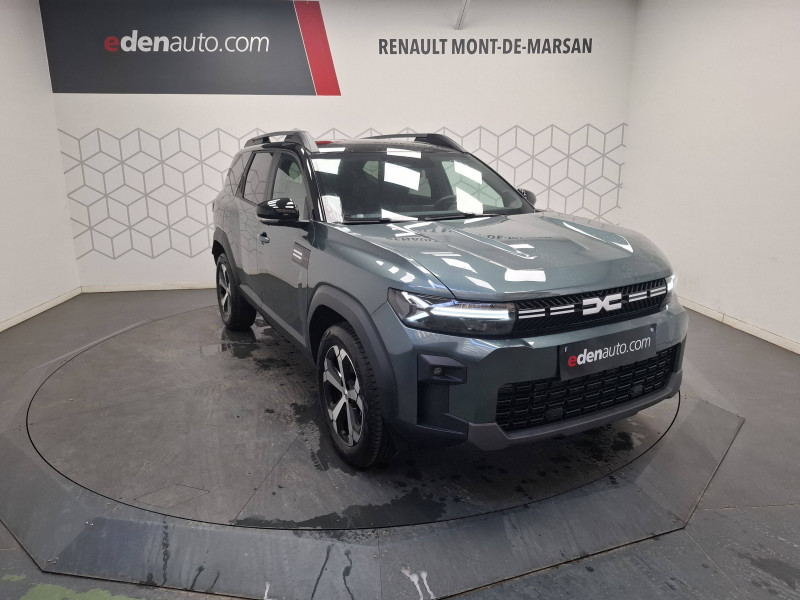 Alerte franchissement de ligne et assistant maintien dans la voie / Allumage des feux automatique et essuie-glace automatiques / Antenne requin / Appel SOS (E-call) / Avertissement distance de sécurité / Banquette AR 40/20/40 et fonction Easy Fold 60/40 / Barres de toit longitudinales / Boîte de vitesse automatique 6 / Boucliers ton carosserie / Commutation automatique feux de croisement/route / Console Centrale avec porte-gobelets, accoudoir et rangement réfrigéré / Coques de rétroviseurs Gris Megalithe / Feux de croisement à LED / Jantes alliage diamantées 18'' TAGASAN / Kit de gonflage / Media Nav Live ( Navigation avec trafic en temps réel + Système audio 3D Arkamys, 6HP, écram 10,1") / My Safety Switch (bouton de déconnexion des aides à la conduite) / Plancher de coffre plat / Répétiteurs latéraux à LED / Sellerie tissu avec logo Dacia / Siège conducteur semi - électrique / Signature lumineuse en "Y" à LED / Système de contrôle de traction (TCS) / Système de contrôle de trajectoire (ESC) et aide au démarrage en côte / Système de freinage d'urgence avancé (piéton, deux-roues et intersection) / Tableau de bord digital 10"