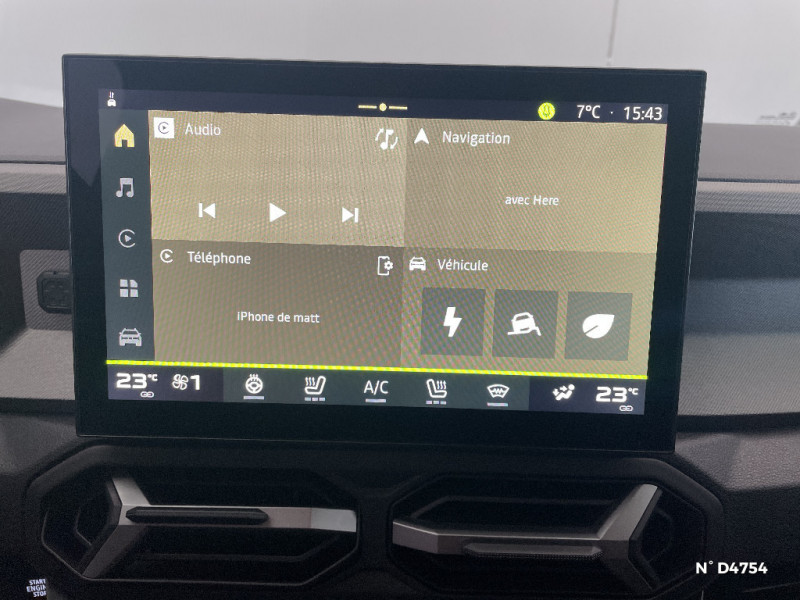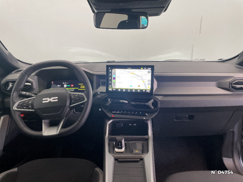 Allumage des feux automatique et essuie-glace automatiques / Plancher de coffre plat / Répétiteurs latéraux à LED / Sellerie spécifique "Denim" avec logo Dacia réflechissant / Alerte franchissement de ligne et assistant maintien dans la voie / Siège passager réglable en hauteur + lombaire conducteur / Signature lumineuse en "Y" à LED / Système de contrôle de traction (TCS) / Système de contrôle de trajectoire (ESC) et aide au démarrage en côte / Système de freinage d'urgence avancé (piéton, deux-roues et intersection) / Tableau de bord digital 7" / Avertissement distance de sécurité / Banquette AR 40/20/40 et fonction Easy Fold 60/40 / Barres de toit longitudinales / Boîte de vitesse automatique 6 / Boucliers ton carosserie / Cléà radiofréquence / Console centrale haute avec accoudoir / Coques de rétroviseurs Gris Megalithe / Feux de croisement à LED / Jantes alliage 17" diamantées TERGAN / Kit de gonflage / Media Display (écran 10,1'',4 HP, réplication smartphone sans fil) / My Safety Switch (bouton de déconnexion des aides à la conduite) / Ouverture du hayon manuelle / Antenne requin / Appel SOS (E-call)