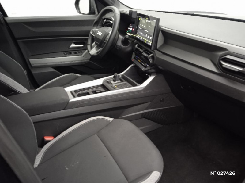 Barres de toit longitudinales / Boucliers ton carosserie / Kit de gonflage / Plancher de coffre plat / Allumage des feux automatique et essuie-glace automatiques / Commutation automatique feux de croisement/route / Feux de croisement à LED / Appel SOS (E-call) / Jantes alliage diamantées 18'' TAGASAN / Système de freinage d'urgence avancé (pieton, deux-rorues et intersection) / Antenne requin / Avertissement distance de sécurité / Système de contrôle de trajectoire (ESC) et aide au démarrage en côte / Signature lumineuse en "Y" à LED / Répétiteurs latéraux à LED / Alerte franchissement de ligne et assistant maintien dans la voie / My Safety Switch (bouton de déconnexion des aides à la conduite) / Media Nav Live (écran 10,1'', Navigation avec trafic en temps réel + Système audio 3D Arkamys, 6HP) / Coques de rétroviseurs Gris Megalithe / Sellerie tissu avec logo Dacia / Tableau de bord digital 10" / Siège conducteur semi - électrique / Banquette AR 40/20/40 et fonction Easy Fold 60/40 / Système de contrôle de traction (TCS) / Boîte de vitesse automatique / Console Centrale avec porte-gobelets, accoudoir et rangement réfrigéré / Peinture opaque
