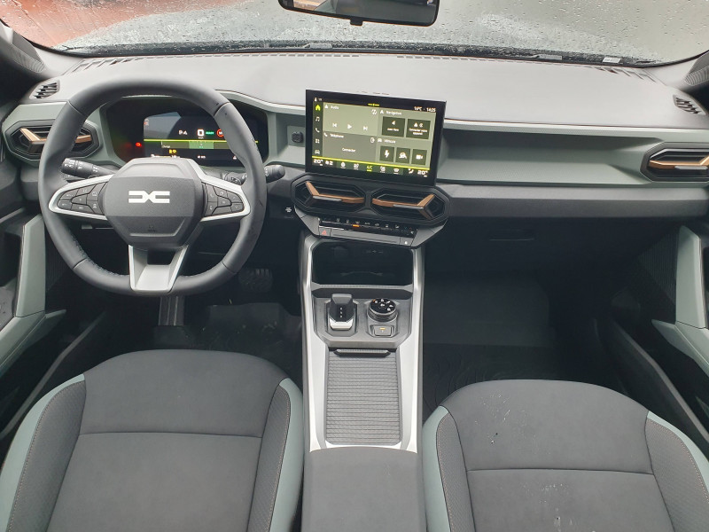 Alerte franchissement de ligne et assistant maintien dans la voie / Allumage des feux automatique et essuie-glace automatiques / Antenne requin / Appel SOS (E-call) / Avertissement distance de sécurité / Banquette AR 40/20/40 et fonction Easy Fold 60/40 / Boîte de vitesse automatique 6 / Boucliers ton carosserie / Commutation automatique feux de croisement/route / Console Centrale avec porte-gobelets, accoudoir et rangement réfrigéré / Contrôle de trajectoire en descente avancé / Coques de rétroviseurs Brun Cuivré / Feux de croisement à LED / Jantes alliage semi - diamantées noires 18'' / Kit de gonflage / My Safety Switch (bouton de déconnexion des aides à la conduite) / Nouveau Media Nav Live (Navigation connectée avec trafic en temps réel + son 3D d'Arkamys, 6HP) / Ouverture du hayon manuelle / Pneus 4 saisons (3PMSF) / Répétiteurs latéraux à LED / Sellerie TEP "Microcloud"avec logo Dacia / Siège passager réglable en hauteur + lombaire conducteur / Signature lumineuse en "Y" à LED / Système de contrôle de traction (TCS) / Système de freinage d'urgence avancé (piéton, deux-roues et intersection) / Tableau de bord digital 10"