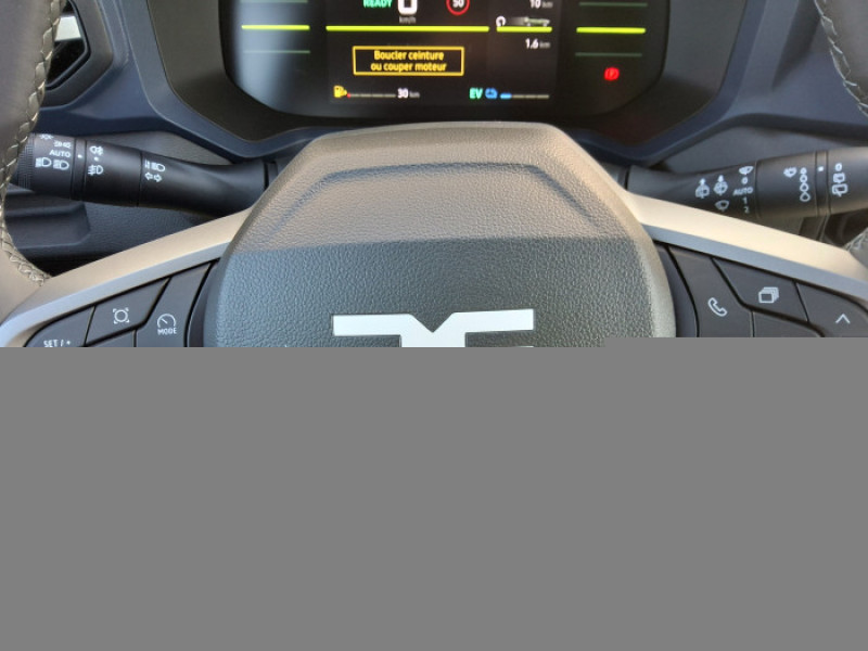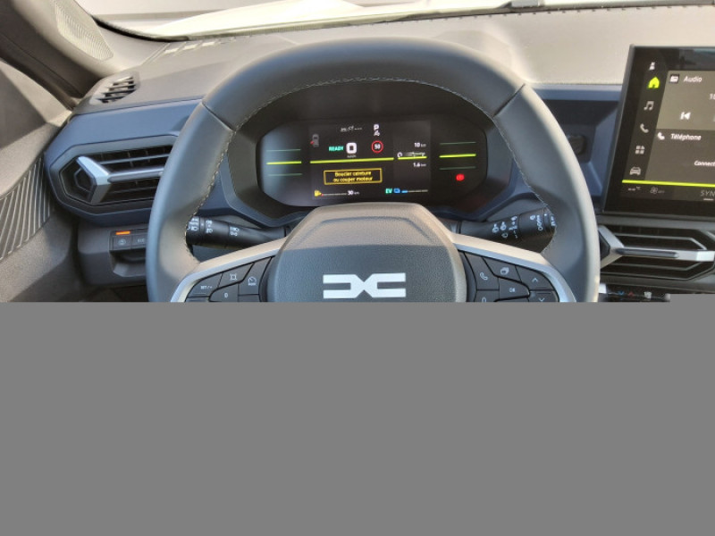 Alerte franchissement de ligne et assistant maintien dans la voie / Allumage des feux automatique et essuie-glace automatiques / Antenne requin / Appel SOS (E-call) / Avertissement distance de securite / Banquette AR 40/20/40 et fonction Easy Fold 60/40 / Barres de toit longitudinales / Boite de vitesse automatique 6 / Boucliers ton carosserie / Cle a radiofrequence / Console centrale haute avec accoudoir / Coques de retroviseurs Gris Megalithe / Feux de croisement a LED / Jantes alliage 17" diamantees TERGAN / Kit de gonflage / Media Display (ecran 10,1'',4 HP, replication smartphone sans fil) / My Safety Switch (bouton de deconnexion des aides a la conduite) / Repetiteurs lateraux a LED / Sellerie specifique "Denim" avec logo Dacia reflechissant / Siege passager reglable en hauteur + lombaire conducteur / Signature lumineuse en "Y" a LED / Systeme de controle de traction (TCS) / Systeme de controle de trajectoire (ESC) et aide au demarrage en cote / Systeme de freinage d'urgence avance (pieton, deux-roues et intersection) / Tableau de bord digital 7"