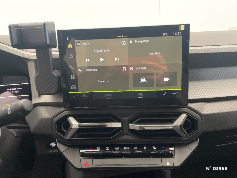 Jantes alliage diamantées 18'' TAGASAN / Kit de gonflage / Tableau de bord digital 10" / Alerte franchissement de ligne et assistant maintien dans la voie / Allumage des feux automatique et essuie-glace automatiques / Antenne requin / Appel SOS (E-call) / Avertissement distance de sécurité / Banquette AR 40/20/40 et fonction Easy Fold 60/40 / Barres de toit longitudinales / Boîte de vitesse manuelle / Boucliers ton carosserie / Commutation automatique feux de croisement/route / Console centrale haute avec accoudoir / Coques de rétroviseurs Gris Megalithe / Feux de croisement à LED / My Safety Switch (bouton de déconnexion des aides à la conduite) / Nouveau Media Nav Live (Navigation connectée avec trafic en temps réel + son 3D d¿Arkamys, 6HP) / Plancher de coffre plat / Répétiteurs latéraux à LED / Sellerie tissu avec logo Dacia / Siège conducteur semi - électrique / Signature lumineuse en "Y" à LED / Système de contrôle de traction (TCS) / Système de contrôle de trajectoire (ESC) et aide au démarrage en côte / Système de freinage d'urgence avancé (piéton, deux-roues et intersection)