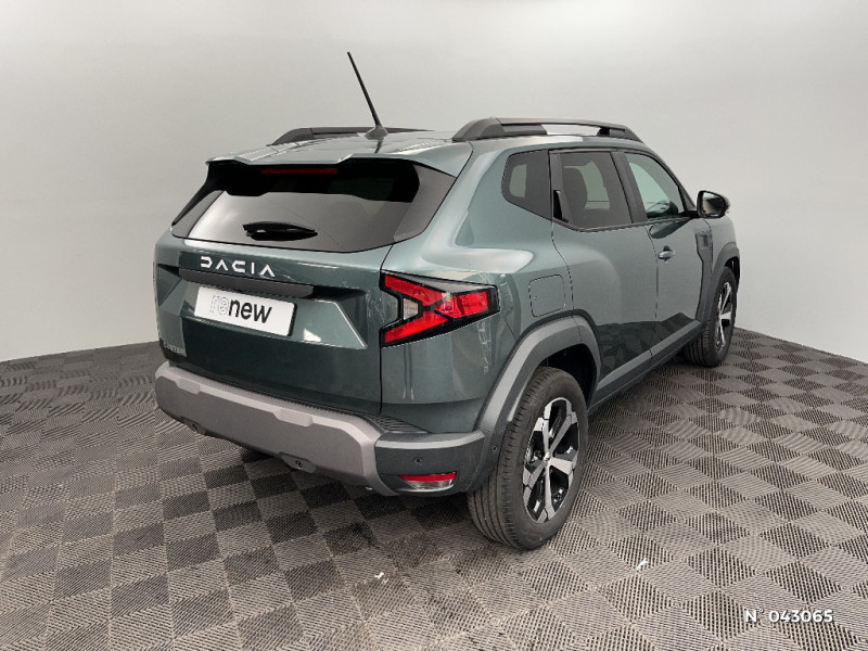 Ouverture du hayon manuelle / My Safety Switch (bouton de déconnexion des aides à la conduite) / Media Nav Live (écran 10,1'', Navigation avec trafic en temps réel + Système audio 3D Arkamys, 6HP) / Coques de rétroviseurs Gris Megalithe / Tableau de bord numérique 7" / Antenne radio 30cm / Jantes alliage diamantées 18'' TAGASAN / Sellerie spécifique "Denim" avec logo Dacia réflechissant / Système de freinage d'urgence avancé (pieton, deux-rorues et intersection) / Système de contrôle de traction (TCS) / Kit de gonflage / Boîte de vitesse manuelle / Rétroviseurs extérieurs électriques, dégivrants et rabattable automatiquement / Peinture opaque / Signature lumineuse en "Y" à LED / Répétiteurs latéraux à LED / Alerte franchissement de ligne et assistant maintien dans la voie / Plancher de coffre plat / Console centrale semi haute avec accoudoir / Allumage des feux automatique et essuie-glace automatiques / Commutation automatique feux de croisement/route / Feux de croisement à LED / Appel SOS (E-call) / Avertissement distance de sécurité / Système de contrôle de trajectoire (ESC) et aide au démarrage en côte / Barres de toit longitudinales / Boucliers ton carosserie