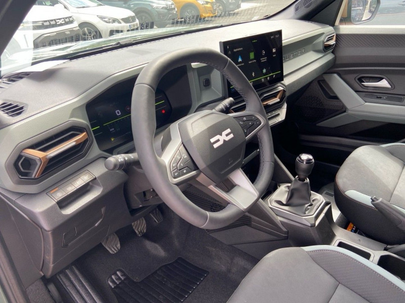 Coques de rétroviseurs Brun Cuivre / Répétiteurs latéraux à LED / Signature lumineuse en "Y" à LED / Sellerie TEP "MicroCloud"avec logo Dacia / Console centrale semi-haute avec accoudoir / Équipement isofix / Commutation automatique feux de croisement/route / Alerte franchissement de ligne et assistant maintien dans la voie / Feux de croisement à LED / voeu / Allumage des feux automatique + Essuie-glace automatique / Tableau de bord numérique 7'' / deux-roues et intersection) / Kit de gonflage / Avertissement distance de sécurité / Appel SOS (E-call) / Système de contrôle de trajectoire (ESC) + aide au démarrage en côte / My Safety Switch (bouton de déconnexion des aides à la conduite) / Media Display (écran 10.1''- Apple Car Play Android Auto) / Jantes alliage diamantées 17'' TERGAN / Barres de toit longitudinales