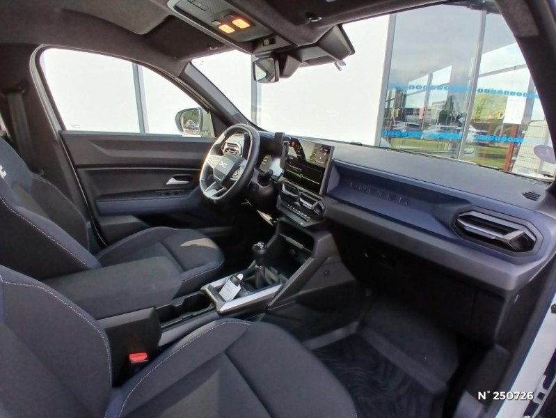 Barres de toit longitudinales / Boucliers ton carosserie / Appel SOS (E-call) / Avertissement distance de sécurité / Système de contrôle de trajectoire (ESC) et aide au démarrage en côte / Système de freinage d'urgence avancé (pieton, deux-rorues et intersection) / Kit de gonflage / Ouverture du hayon manuelle / My Safety Switch (bouton de déconnexion des aides à la conduite) / Media Nav Live (écran 10,1'', Navigation avec trafic en temps réel + Système audio 3D Arkamys, 6HP) / Coques de rétroviseurs Gris Megalithe / Tableau de bord numérique 7" / Antenne radio 30cm / Jantes alliage diamantées 18'' TAGASAN / Harmonie intérieure "Demin" / Sellerie spécifique "Denim" avec logo Dacia réflechissant / Signature lumineuse en "Y" à LED / Répétiteurs latéraux à LED / Alerte franchissement de ligne et assistant maintien dans la voie / Plancher de coffre plat / Console centrale semi haute avec accoudoir / Allumage des feux automatique et essuie-glace automatiques / Commutation automatique feux de croisement/route / Feux de croisement à LED